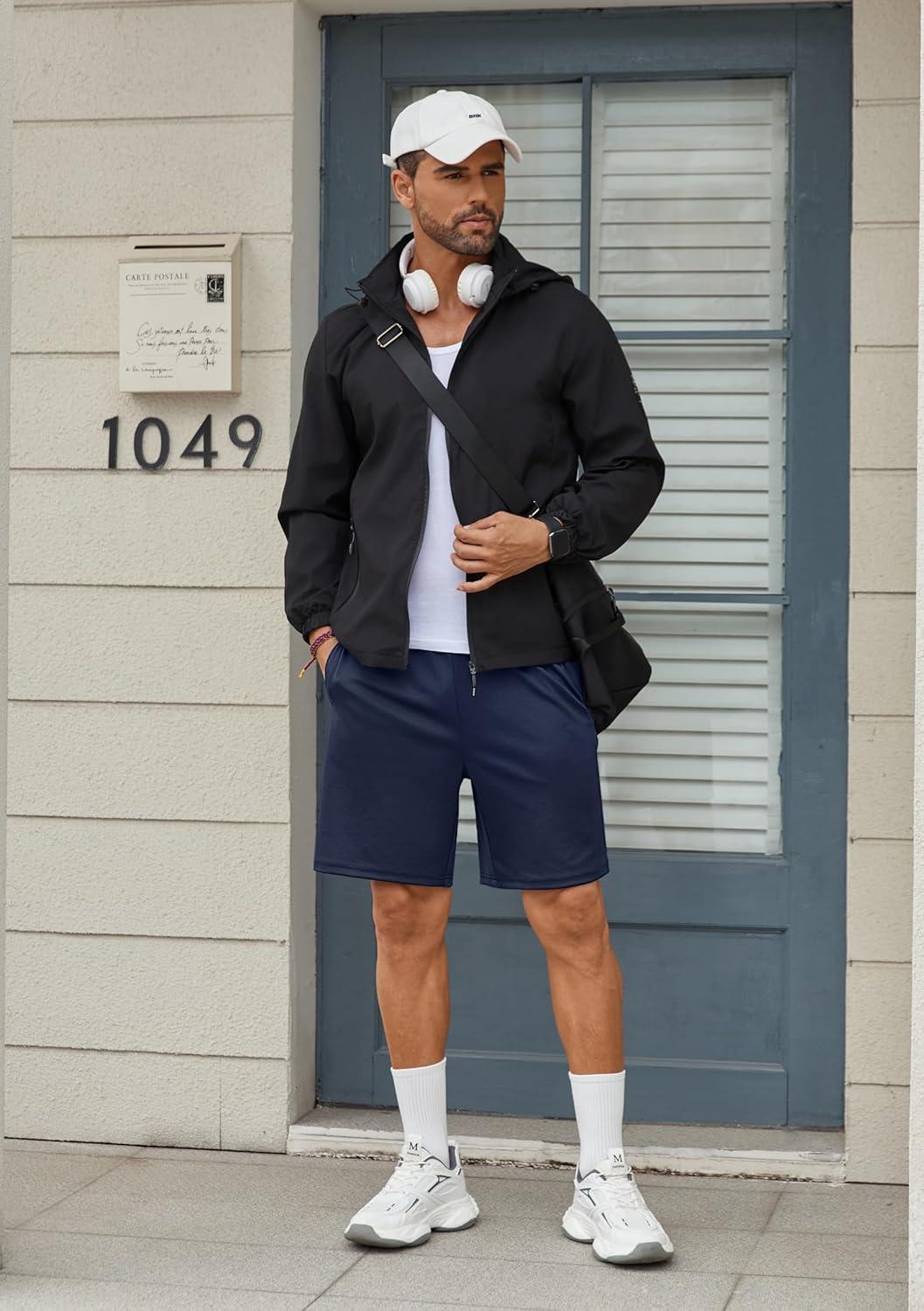 COOFANDY Men’s 2 Pack Workout Gym Shorts 7 Inch / 5 Inch Athletic Shorts Lightweight Casual Jogger Short with Zipper Pockets(Navy Blue / Army Green)