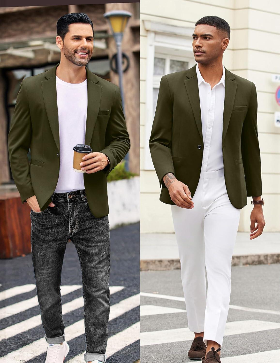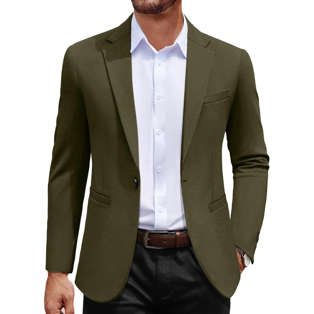 COOFANDY Men’s Casual Blazer Jacket One Button Suit Jackets Lightweight Knit Sport Coat(Army Green)