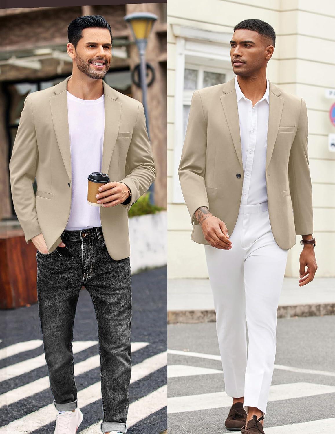 COOFANDY Men’s Casual Blazer Jacket One Button Suit Jackets Lightweight Knit Sport Coat(Beige)