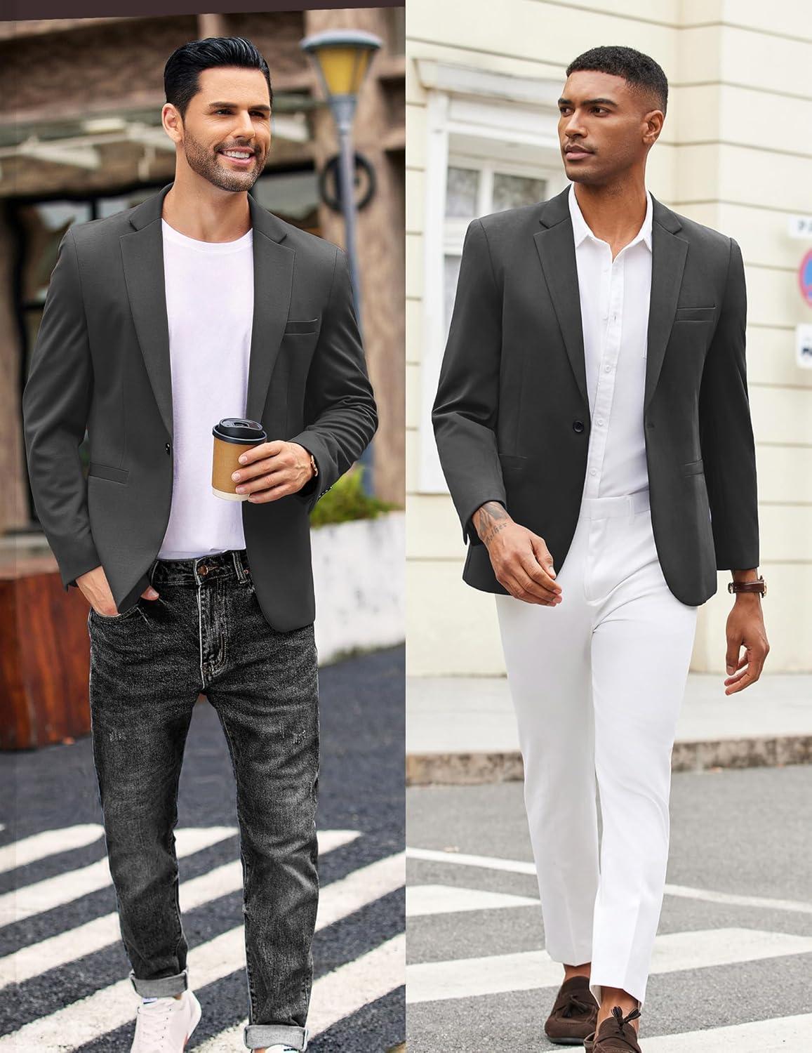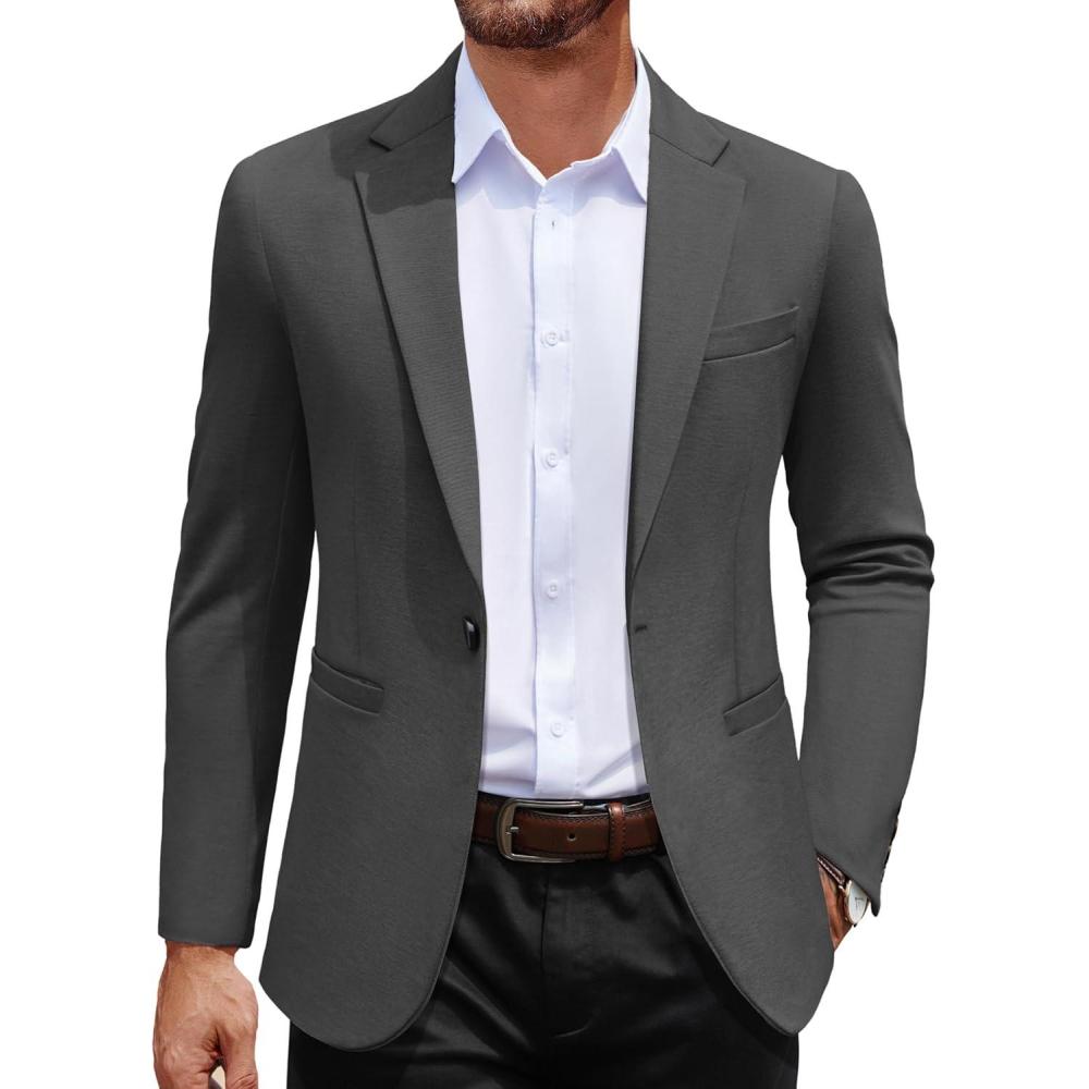 COOFANDY Men’s Casual Blazer Jacket One Button Suit Jackets Lightweight Knit Sport Coat(Dark Gray)
