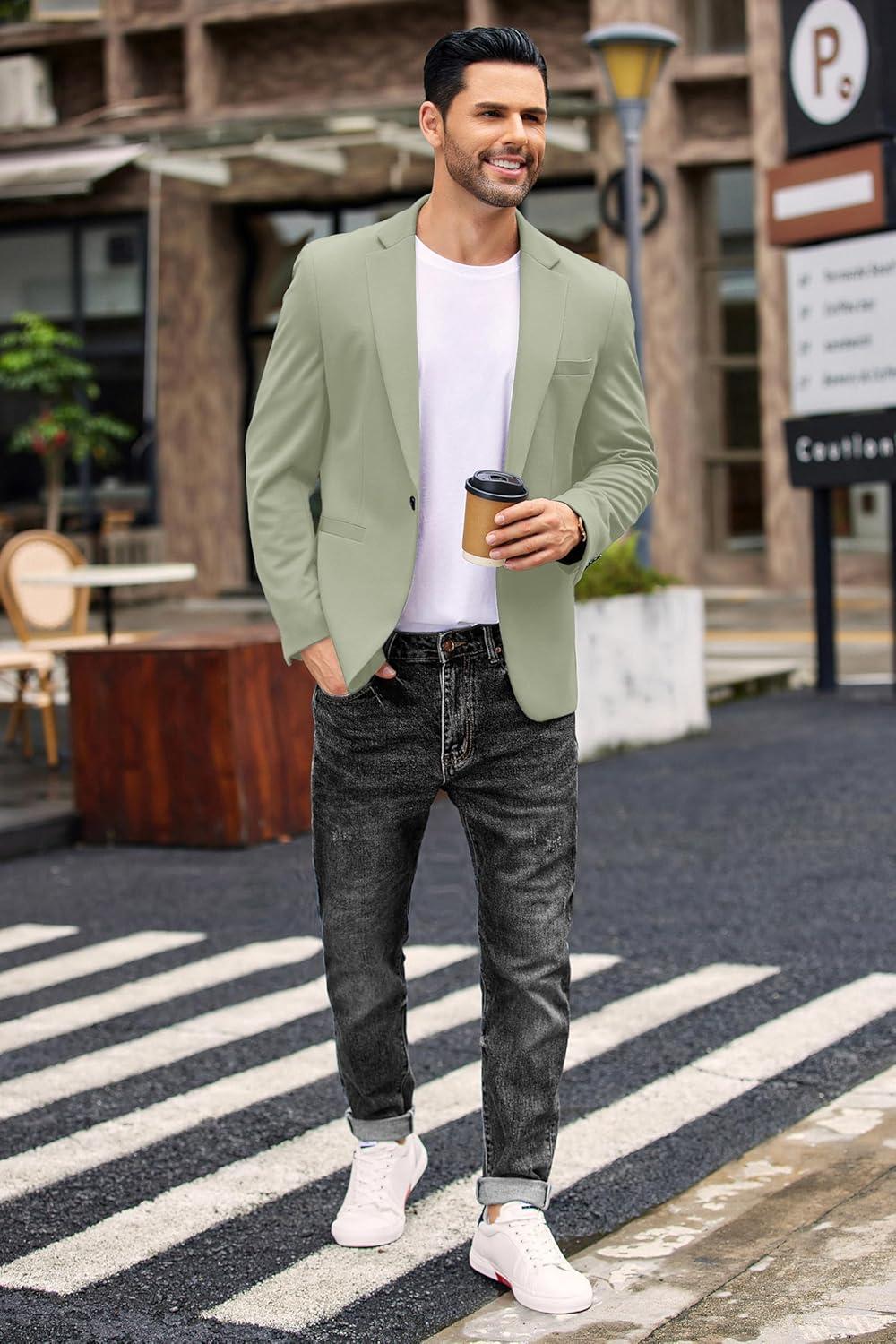 COOFANDY Men’s Casual Blazer Jacket One Button Suit Jackets Lightweight Knit Sport Coat(Green)