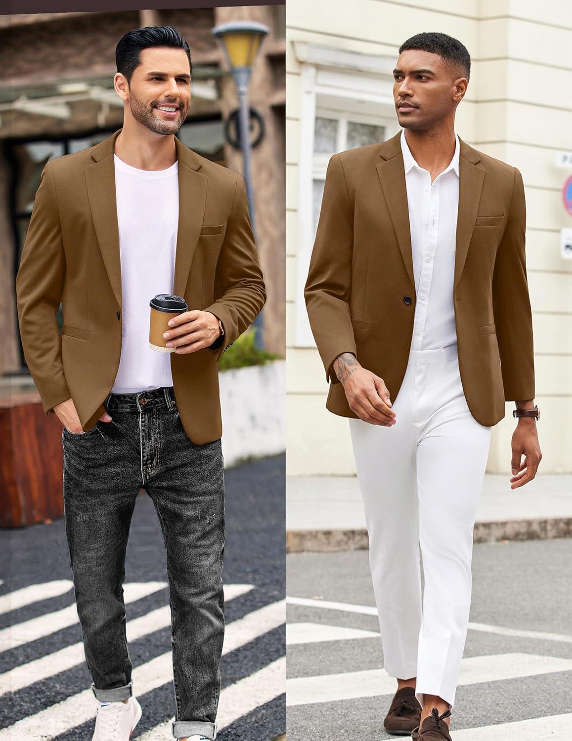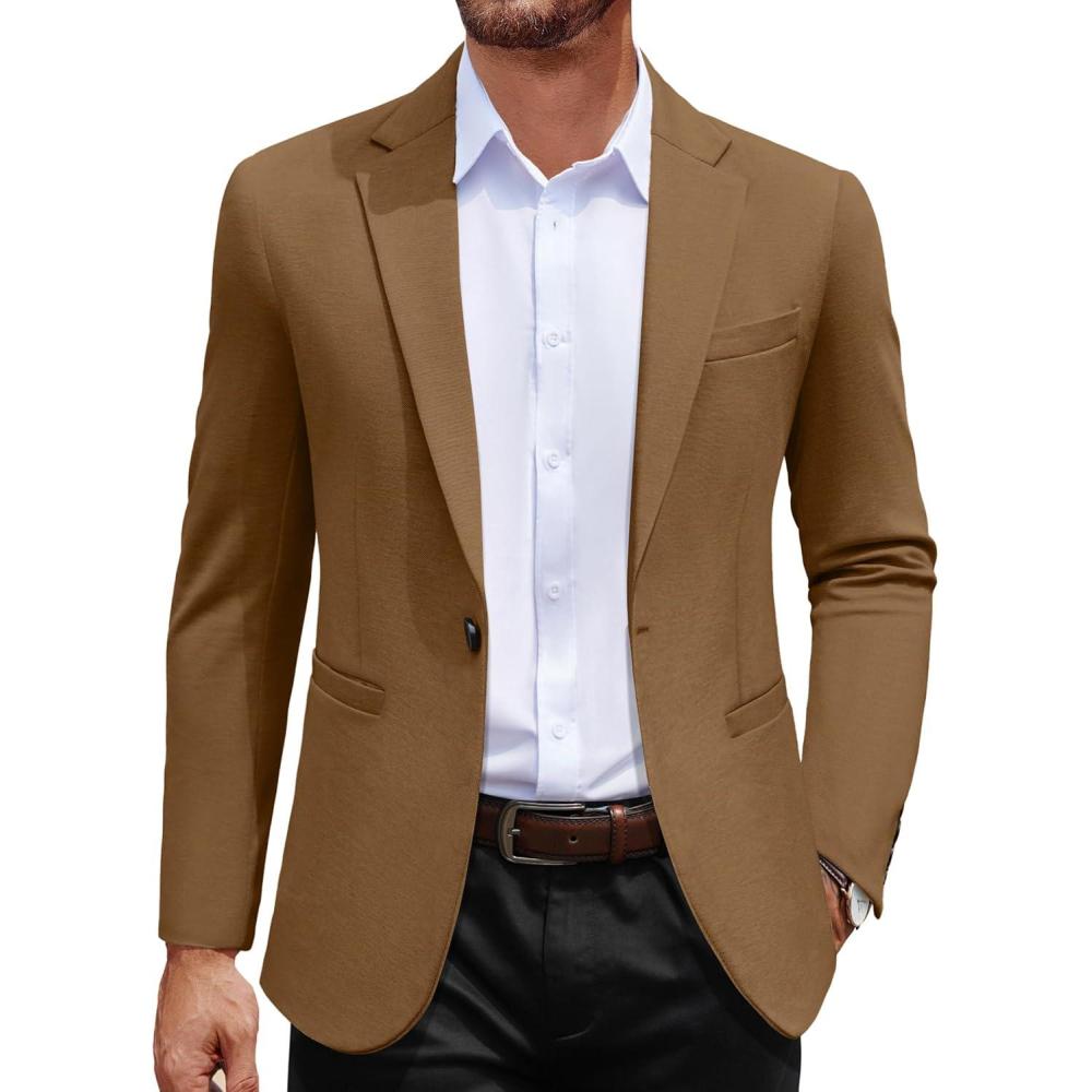 COOFANDY Men’s Casual Blazer Jacket One Button Suit Jackets Lightweight Knit Sport Coat(Khaki)