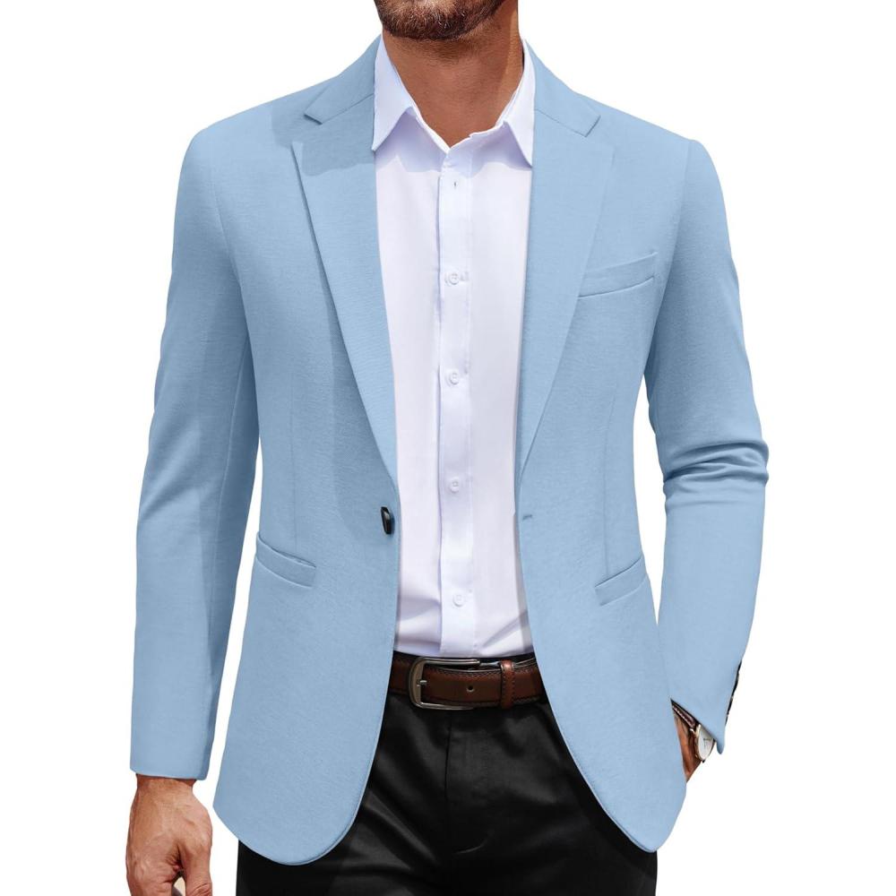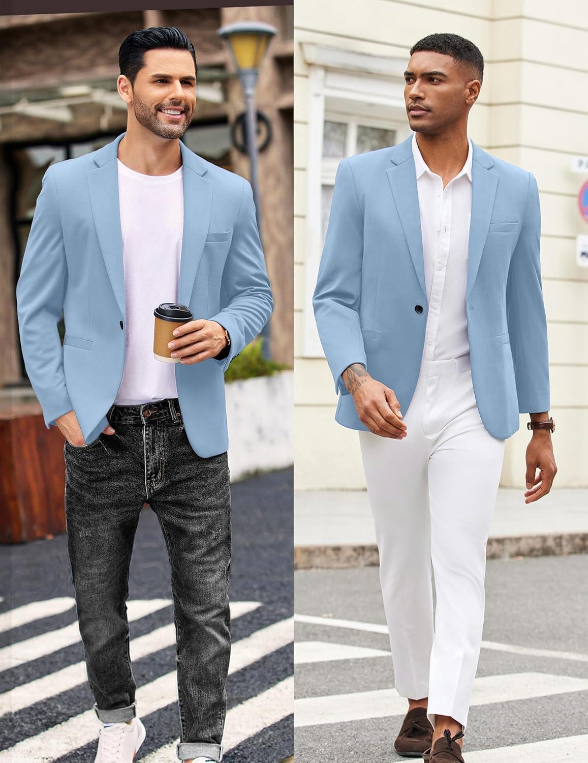 COOFANDY Men’s Casual Blazer Jacket One Button Suit Jackets Lightweight Knit Sport Coat(Light Blue)