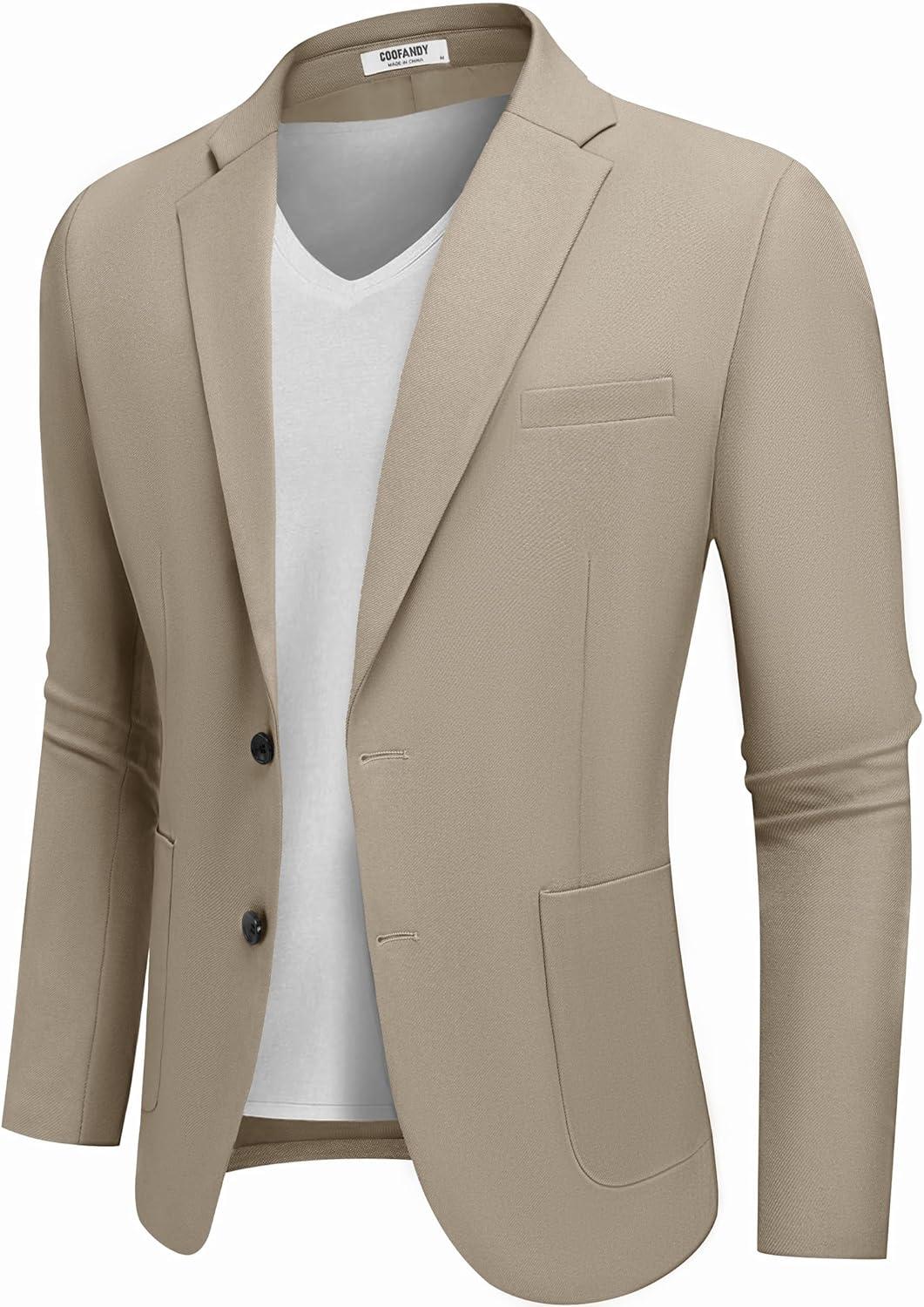 COOFANDY Men’s Casual Blazer Jacket Slim Fit Two Button Suit Jackets Lightweight Knit Sport Coat(Khaki)