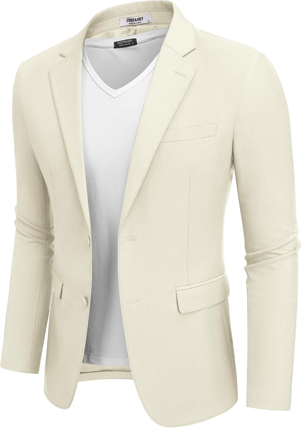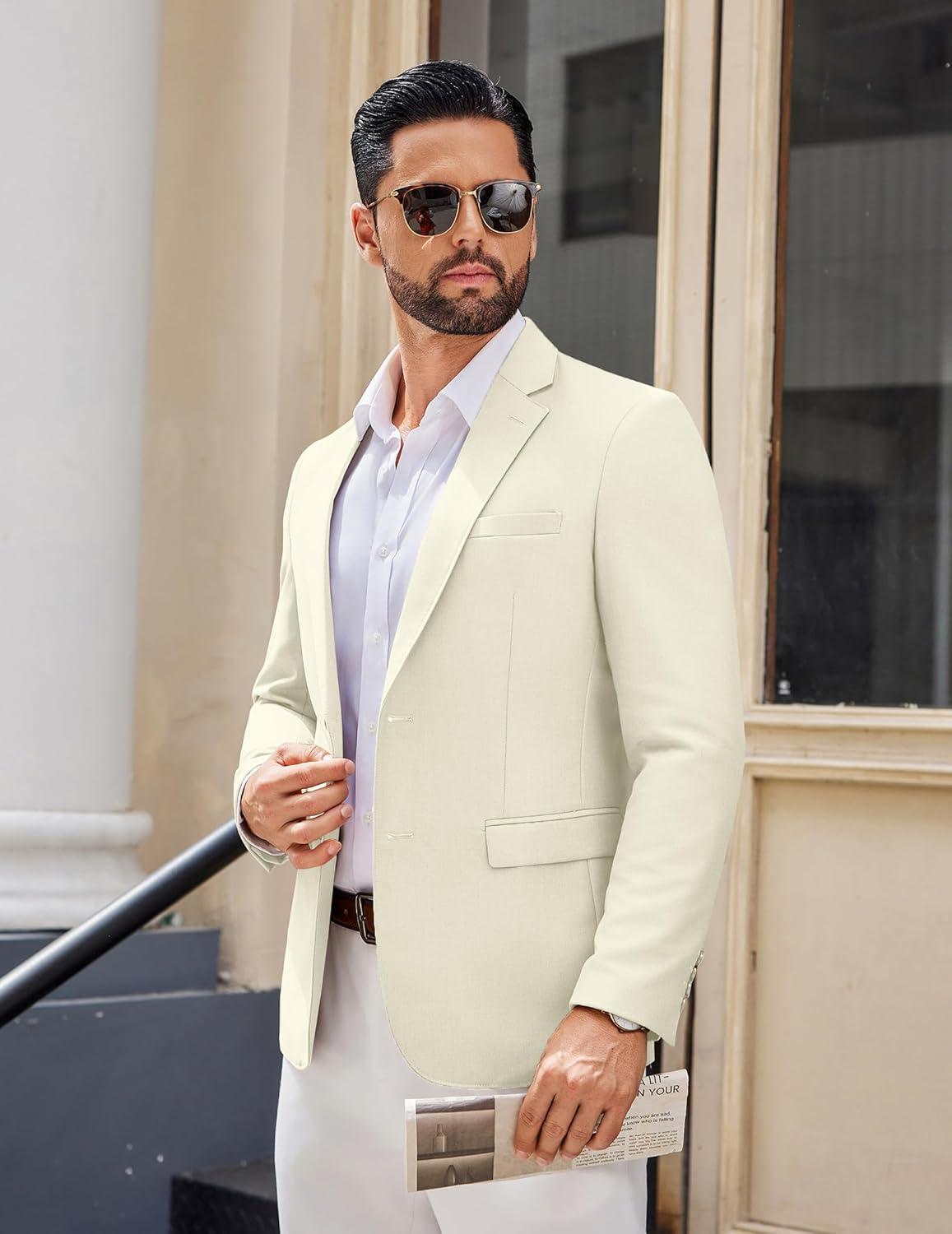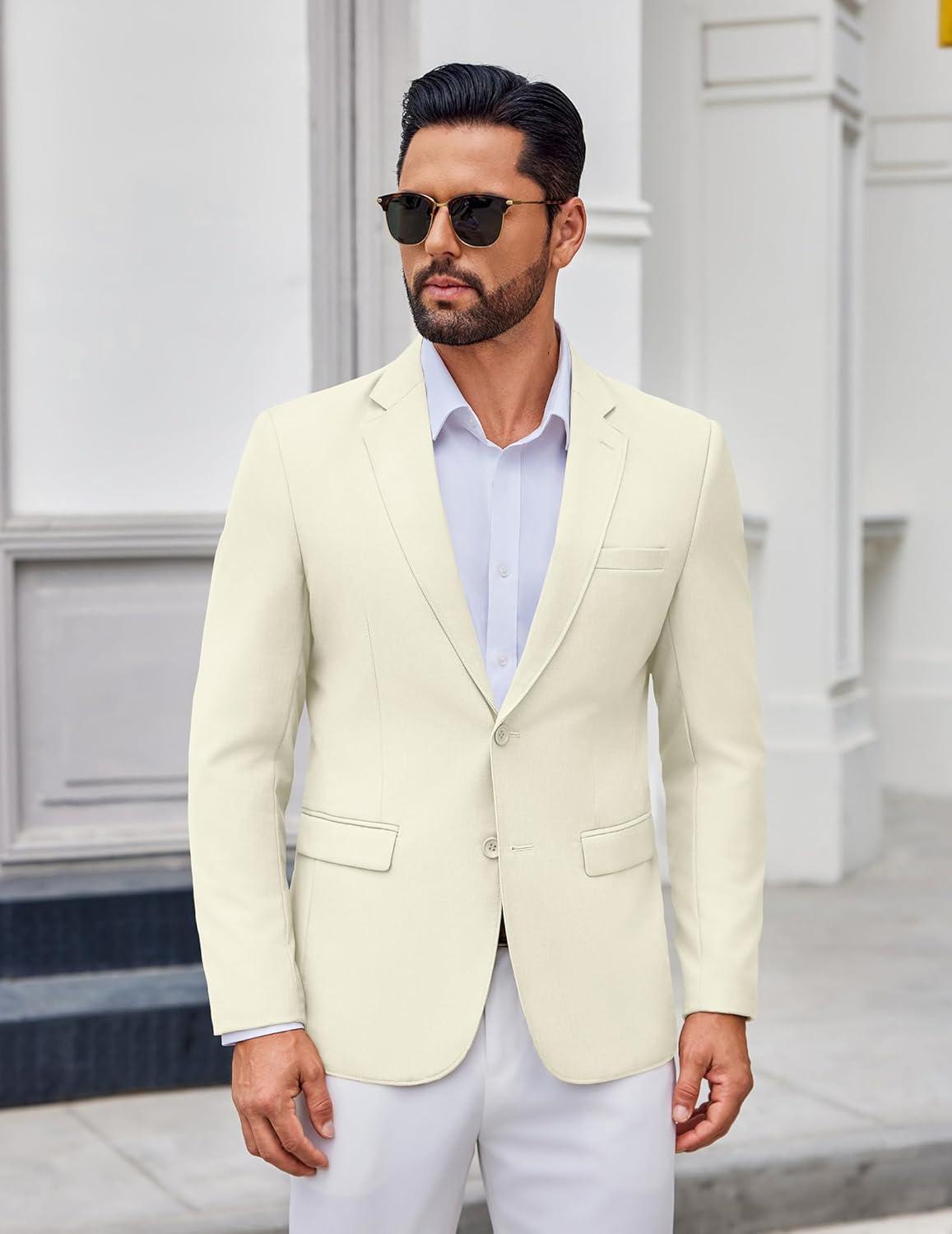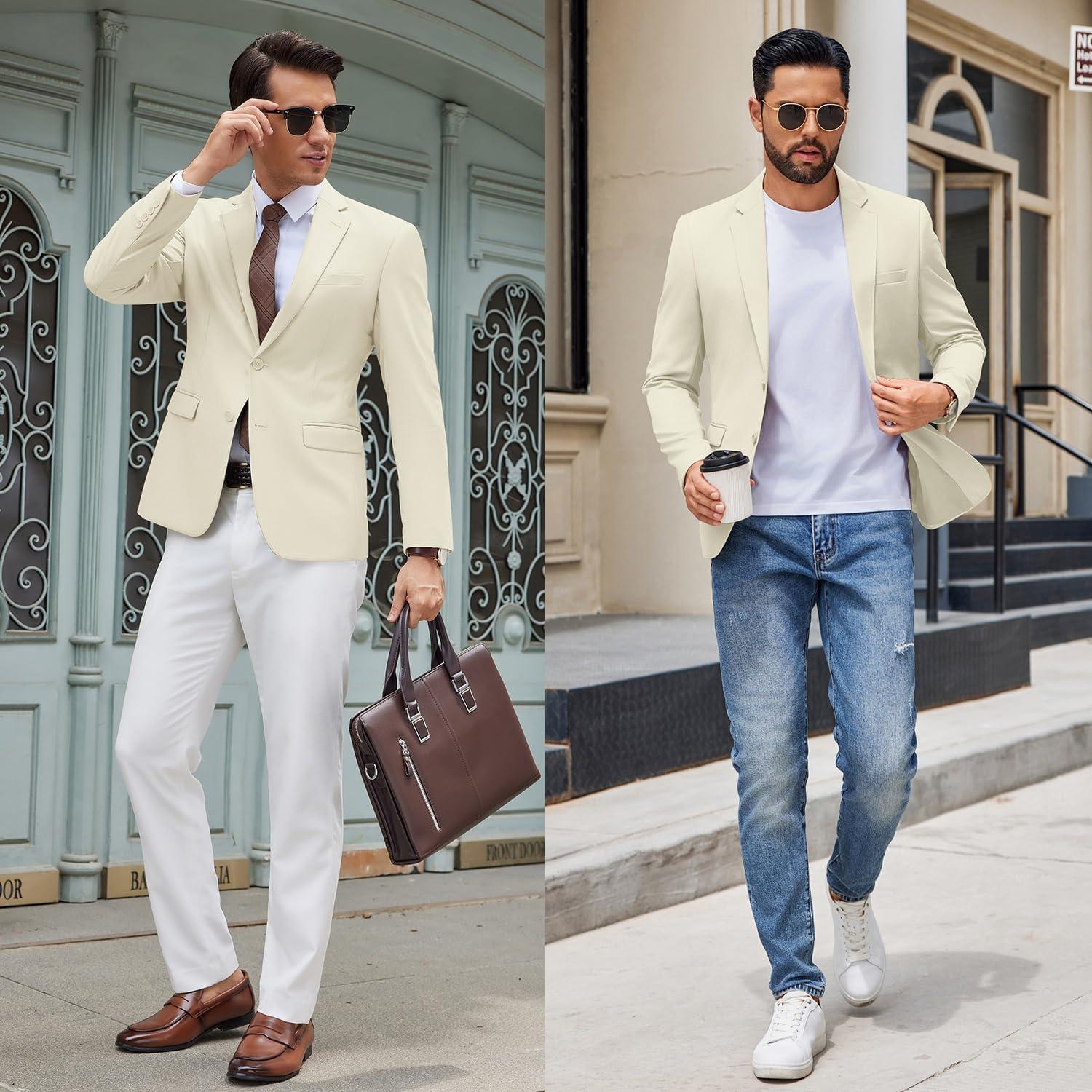 COOFANDY Men’s Casual Blazer Lightweight Sport Coats Two Buttons Slim Fit Suit Jacket for Business Wedding Dress(Beige)