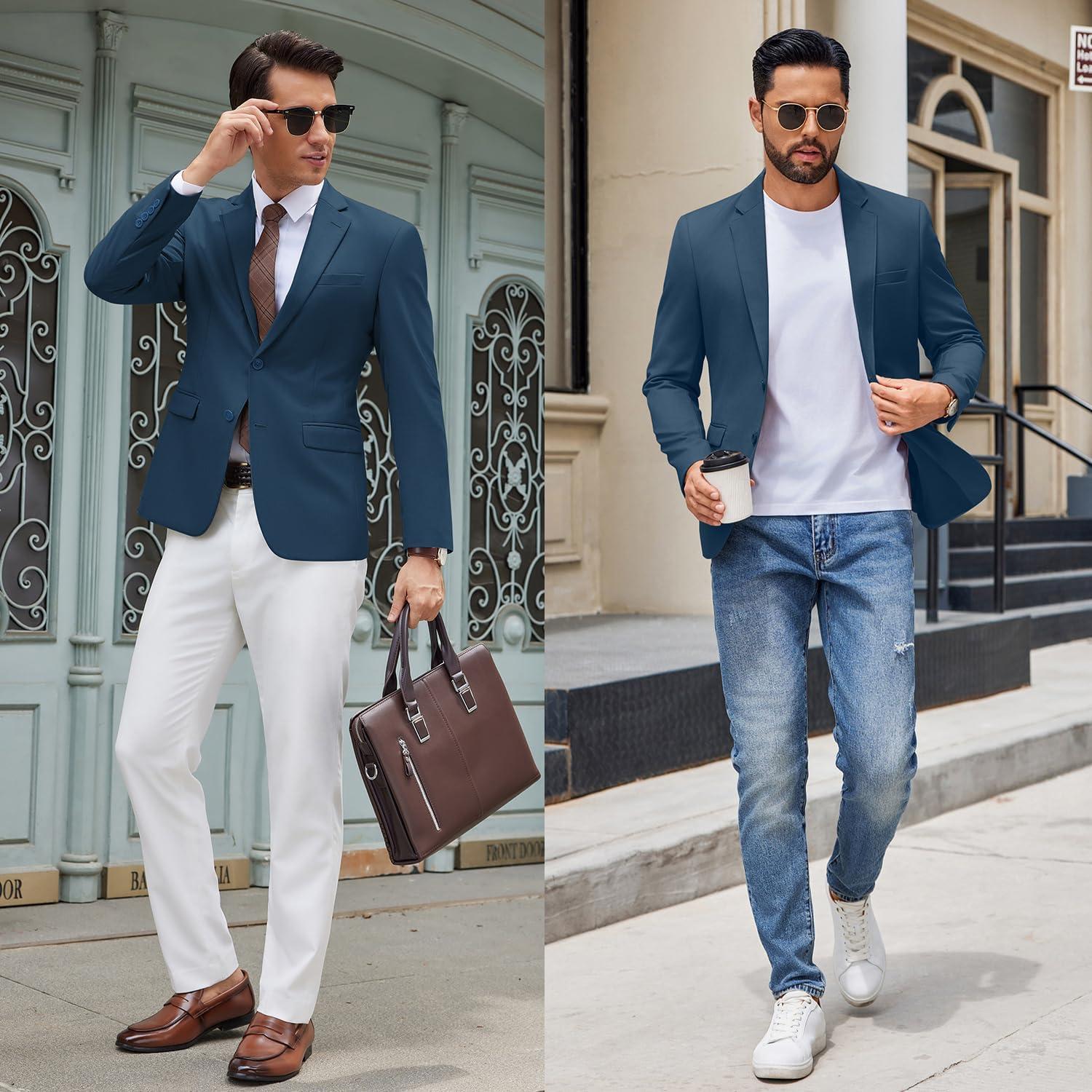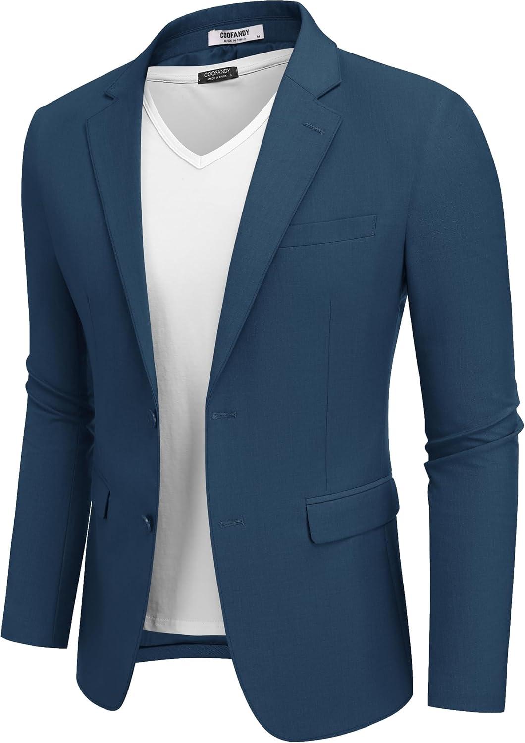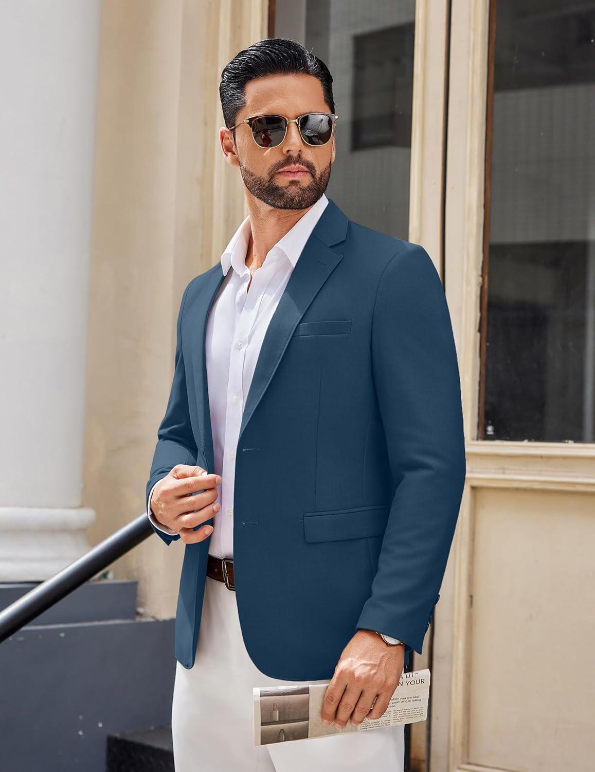 COOFANDY Men’s Casual Blazer Lightweight Sport Coats Two Buttons Slim Fit Suit Jacket for Business Wedding Dress(Blue)