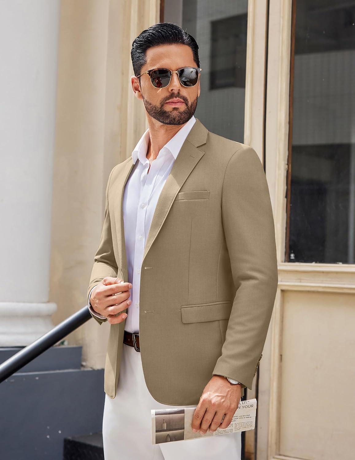 COOFANDY Men’s Casual Blazer Lightweight Sport Coats Two Buttons Slim Fit Suit Jacket for Business Wedding Dress(Khaki)