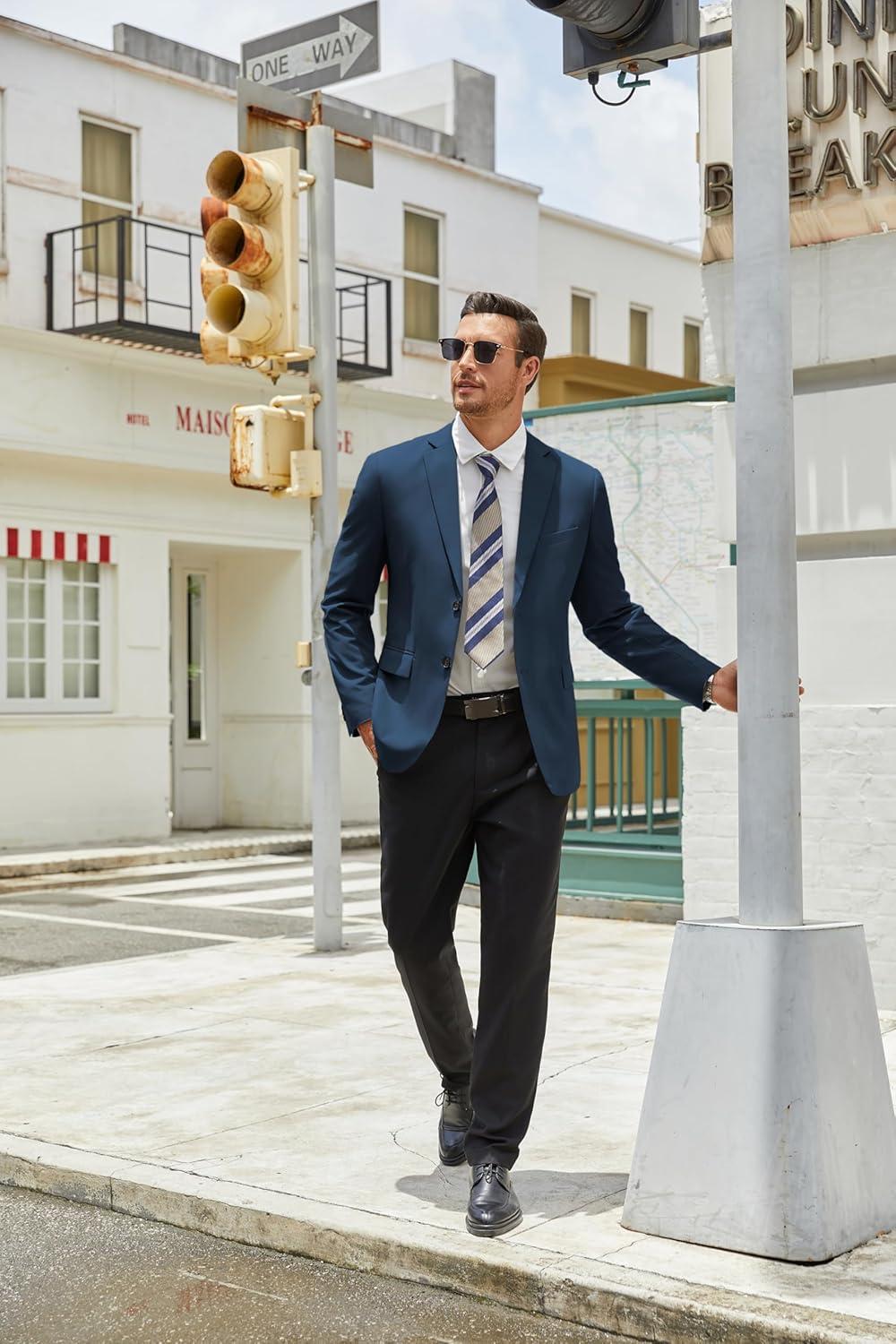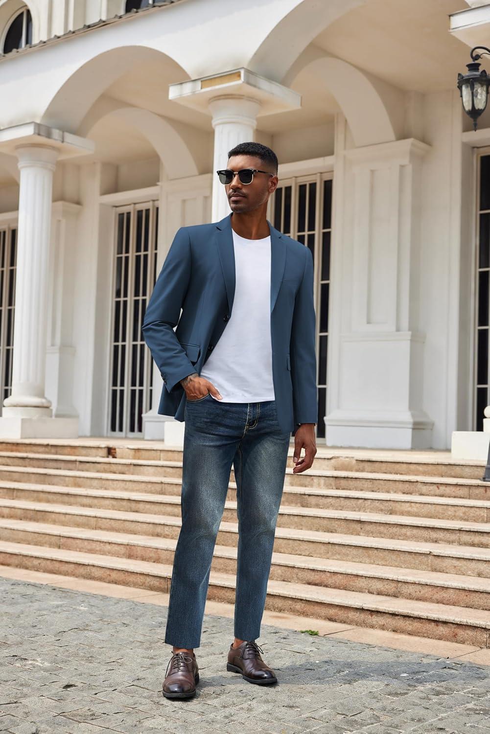 COOFANDY Men’s Casual Blazer Lightweight Suit Jacket Slim Fit Sport Coats for Men(Dark Blue)