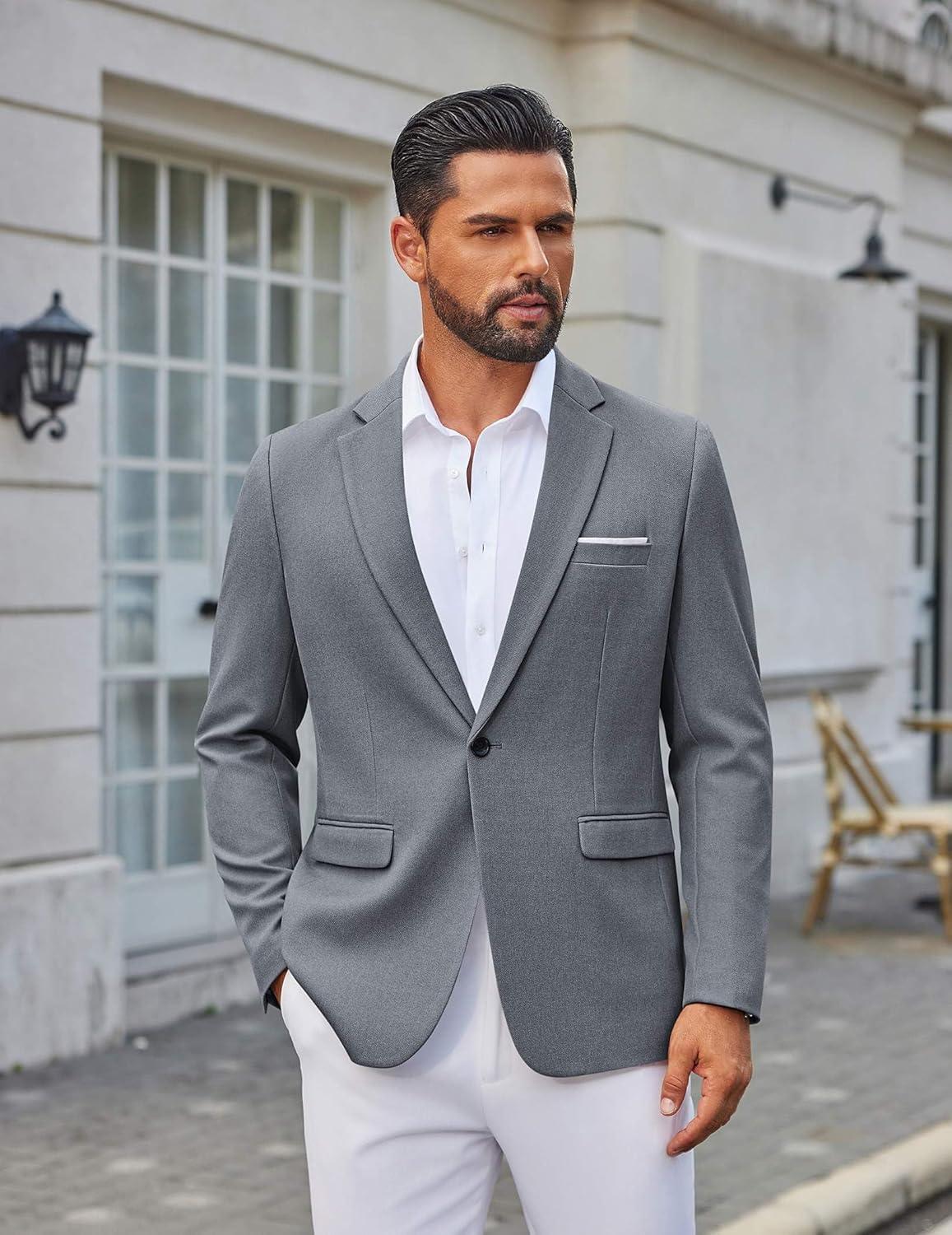 COOFANDY Men’s Casual Blazer One Button Sport Coats Lightweight Suit Jacket(Grey)