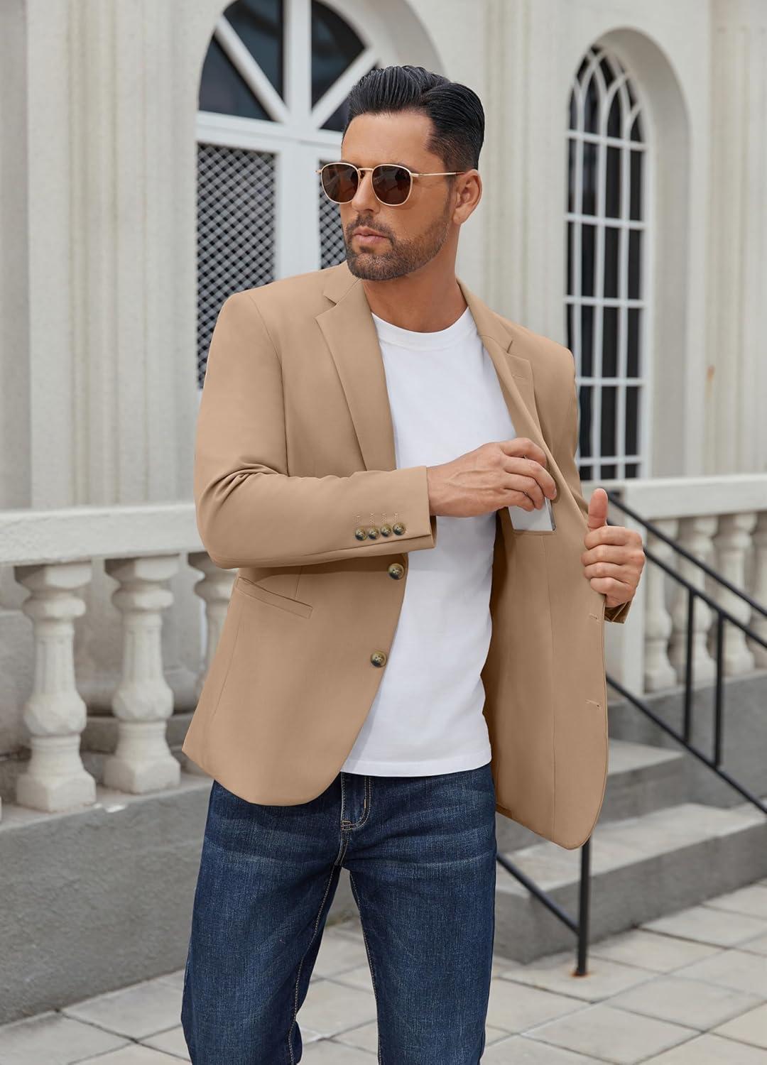 COOFANDY Men’s Casual Blazer Regular Fit Lightweight Two Button Sport Coat Suit Jacket(Khaki)