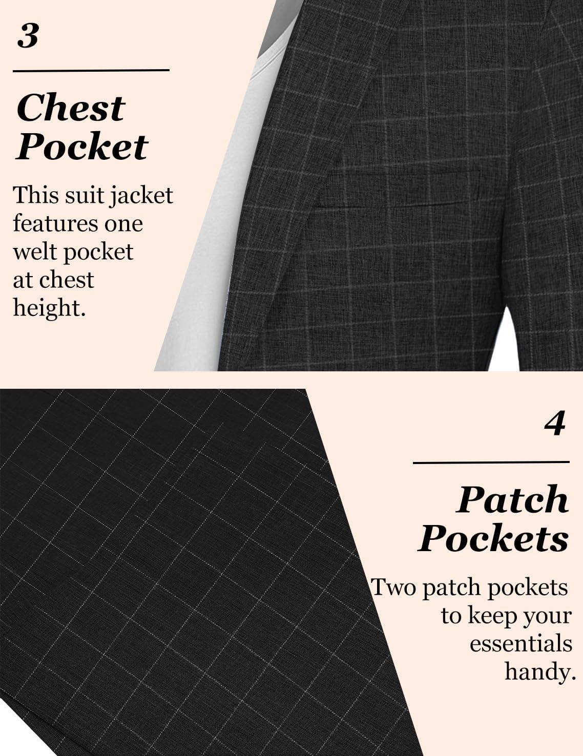 COOFANDY Mens Casual Blazer Slim Fit Sport Coat Lightweight Two Button Suit Jackets(Plaid Blazer- Black)