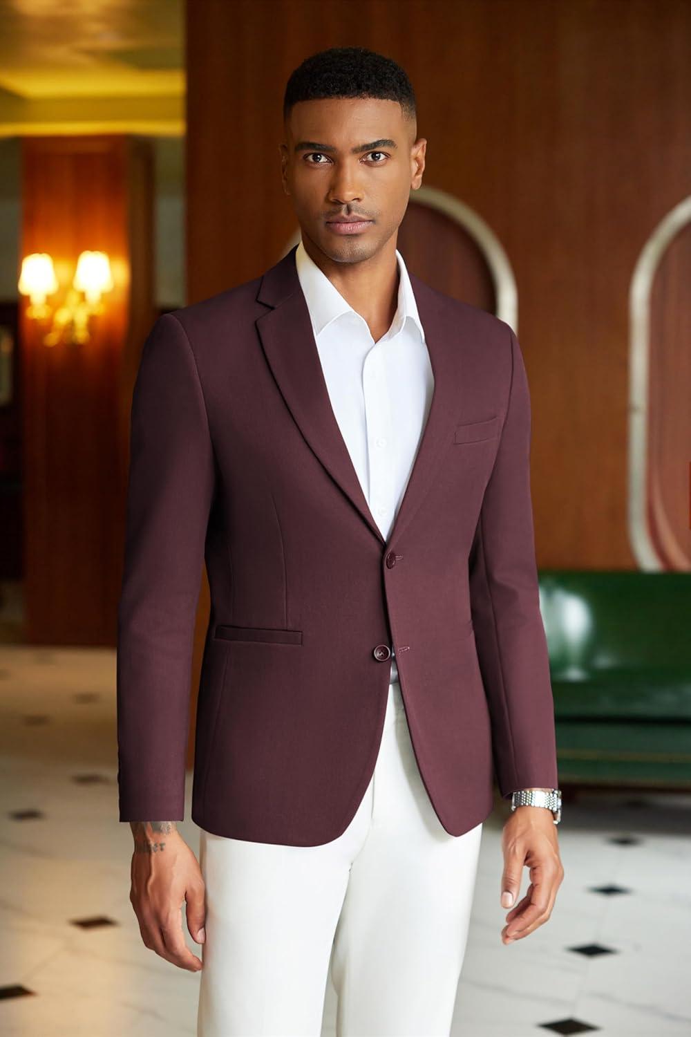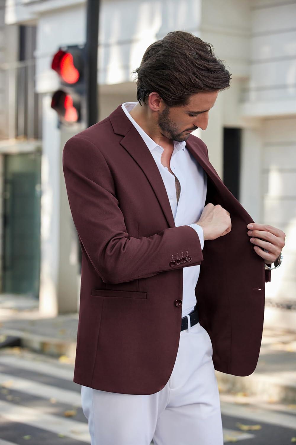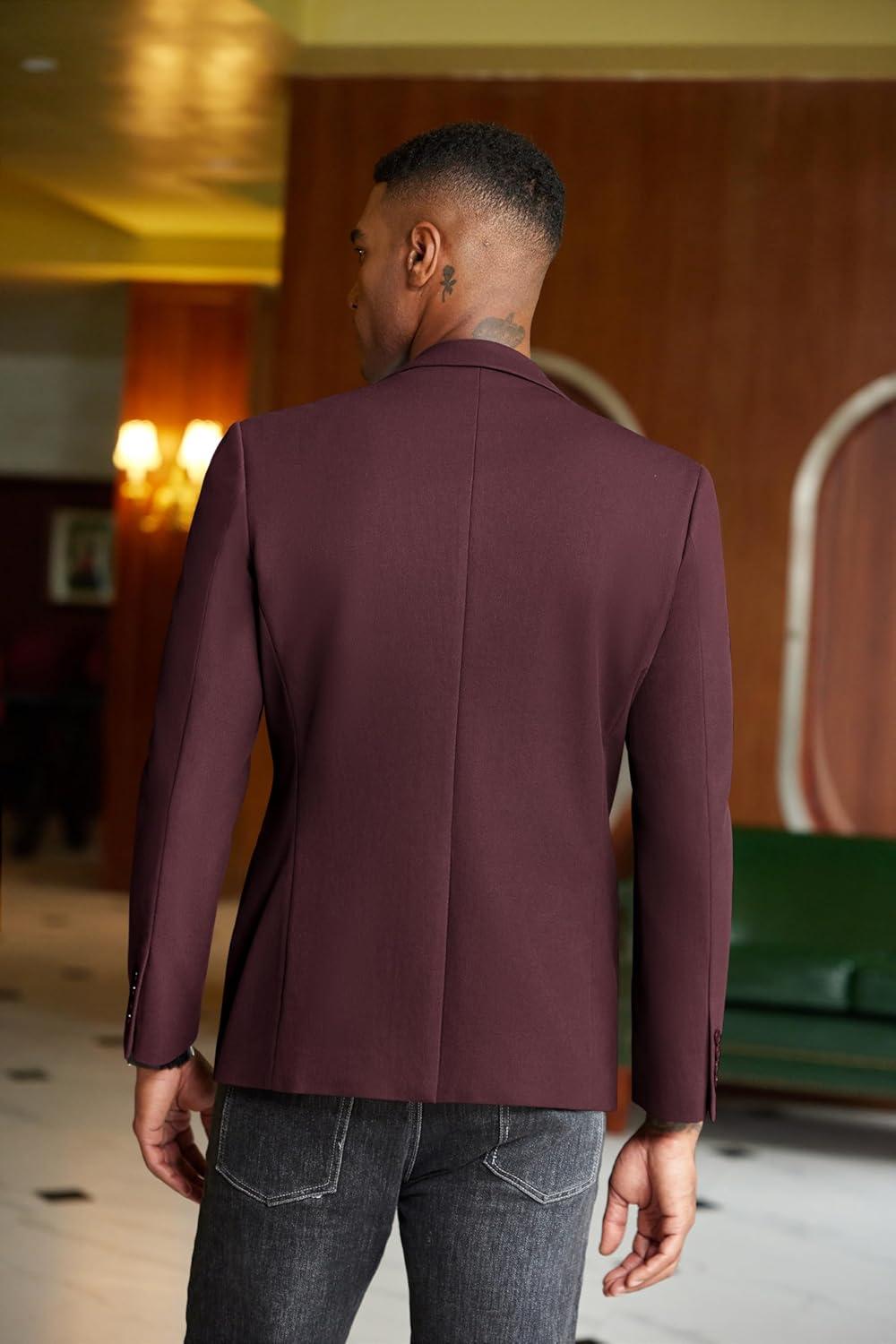 COOFANDY Men’s Casual Blazer Slim Fit Sport Coats Two Button Knit Textured Suit Jacket(Wine Red)