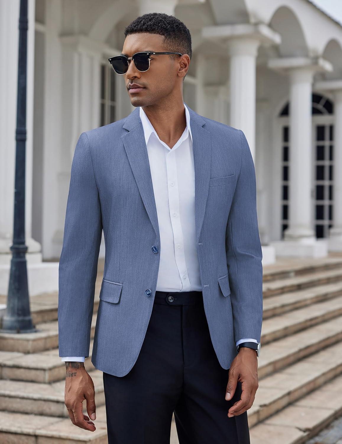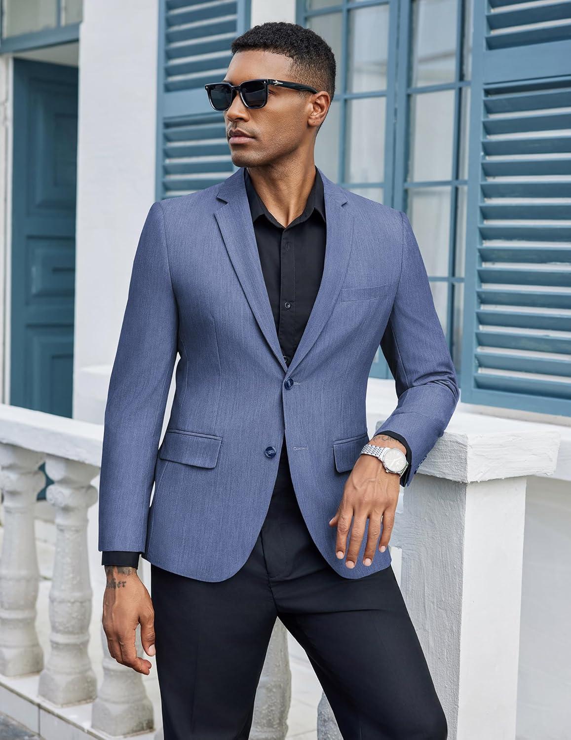 COOFANDY Mens Casual Blazer Slim Fit Suit Jacket Two Button Lightweight Sport Coat(Blue)