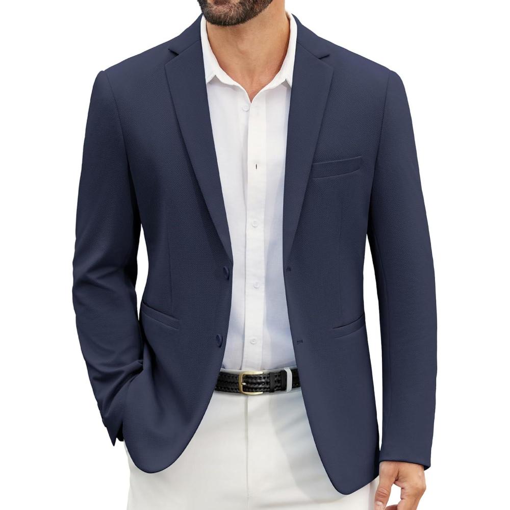 COOFANDY Men’s Casual Blazer Slim Fit Suit Jackets Two Button Lightweight Knit Sport Coat(Navy Blue)