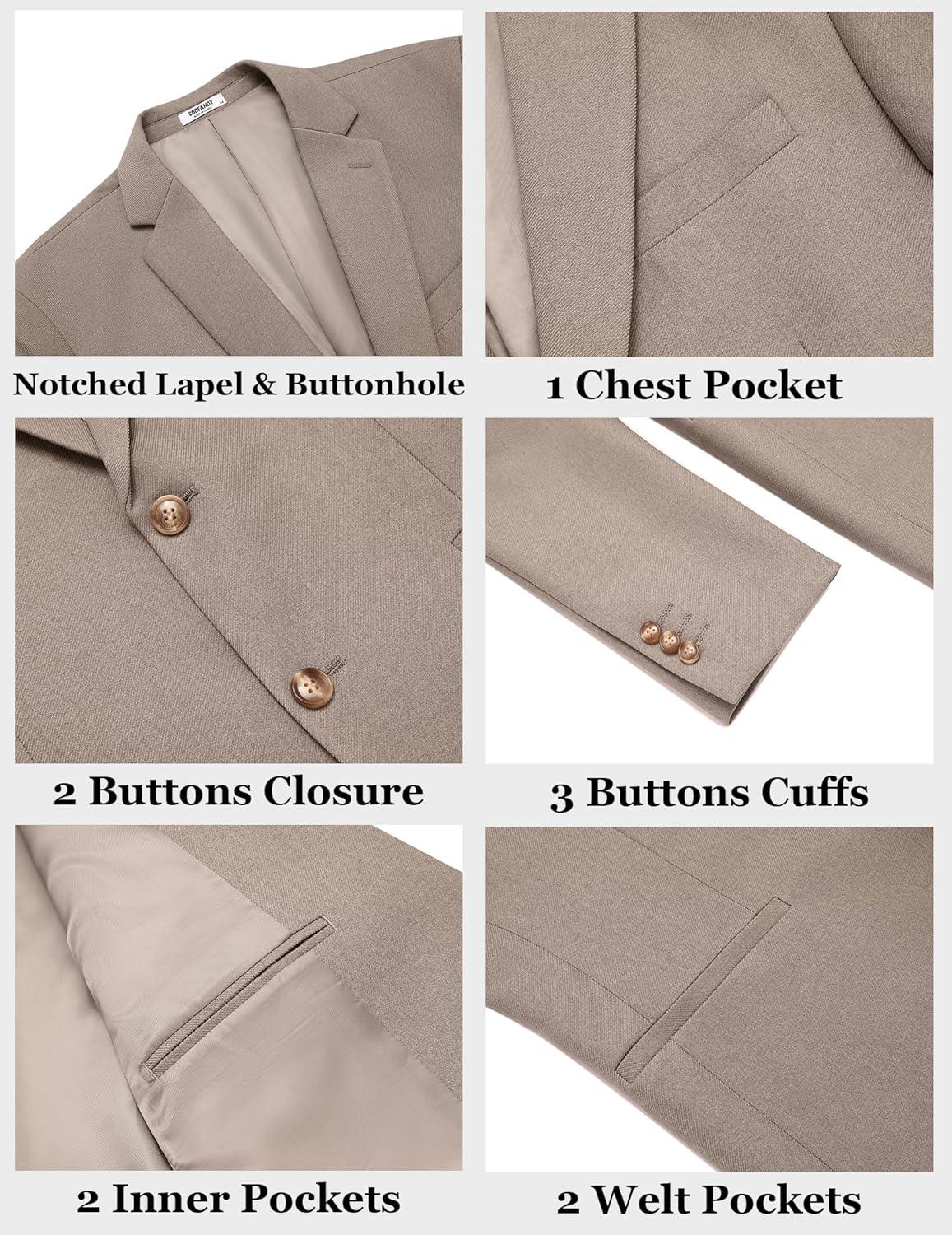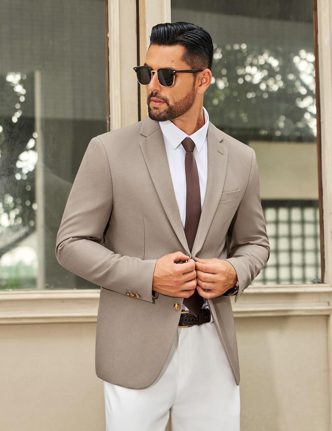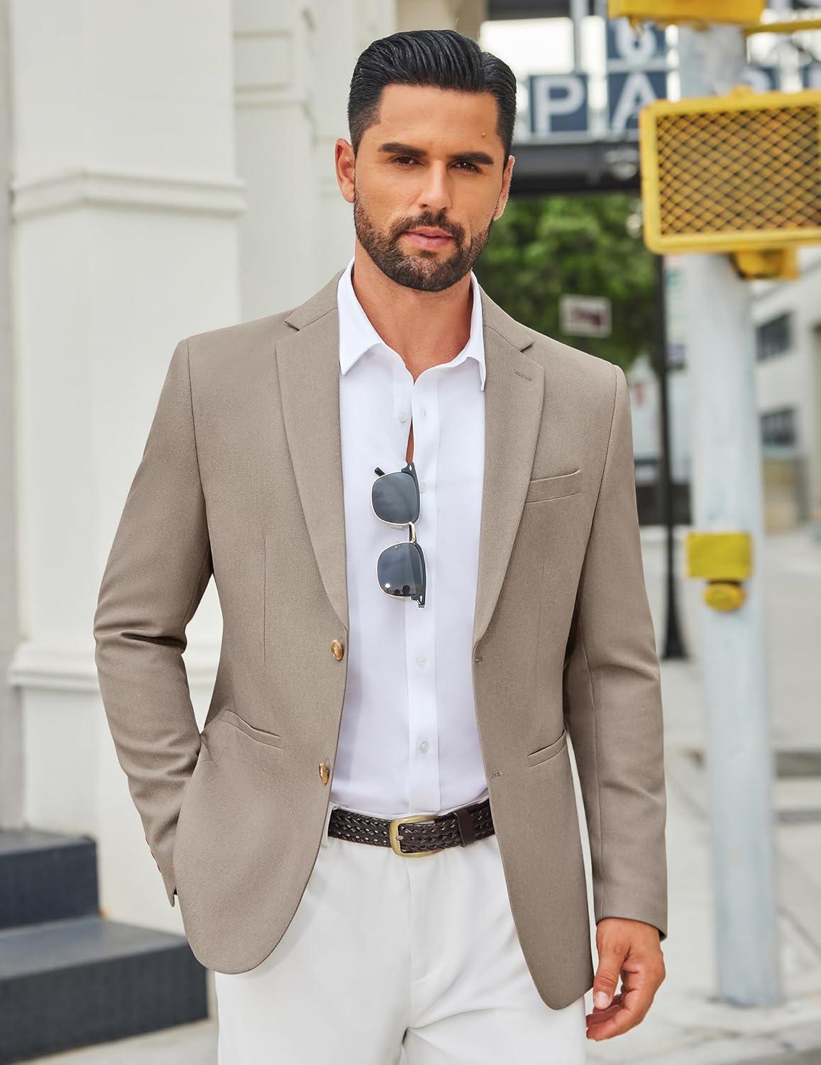 COOFANDY Men’s Casual Blazer Slim Fit Two Buttons Sport Coat Lightweight Suit Jacket(Khaki)