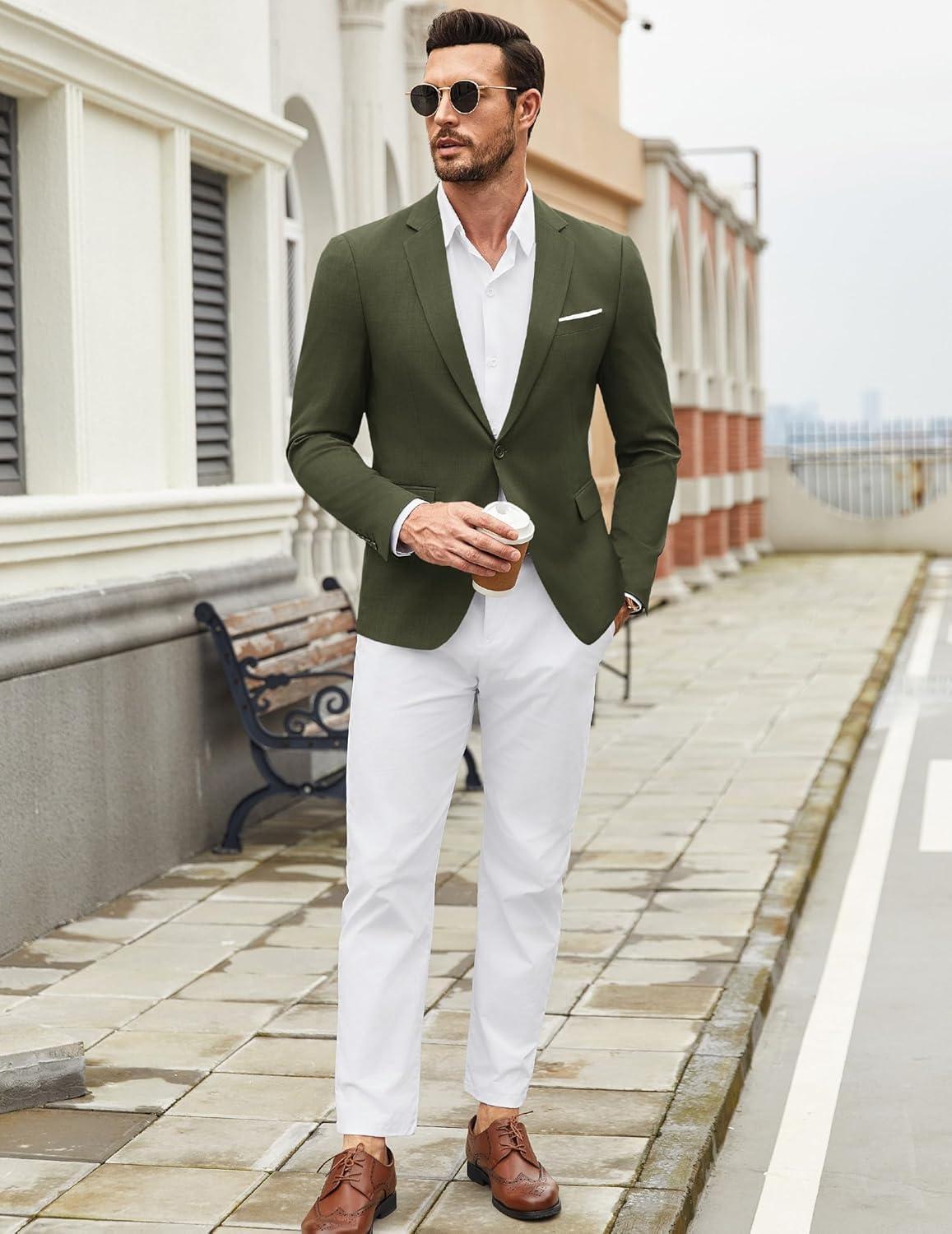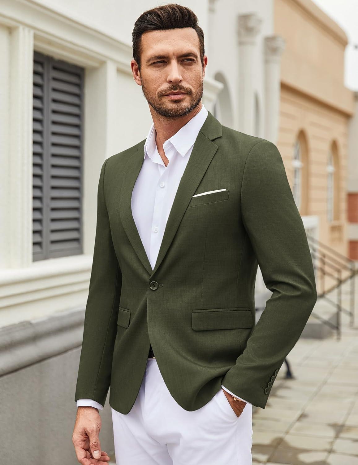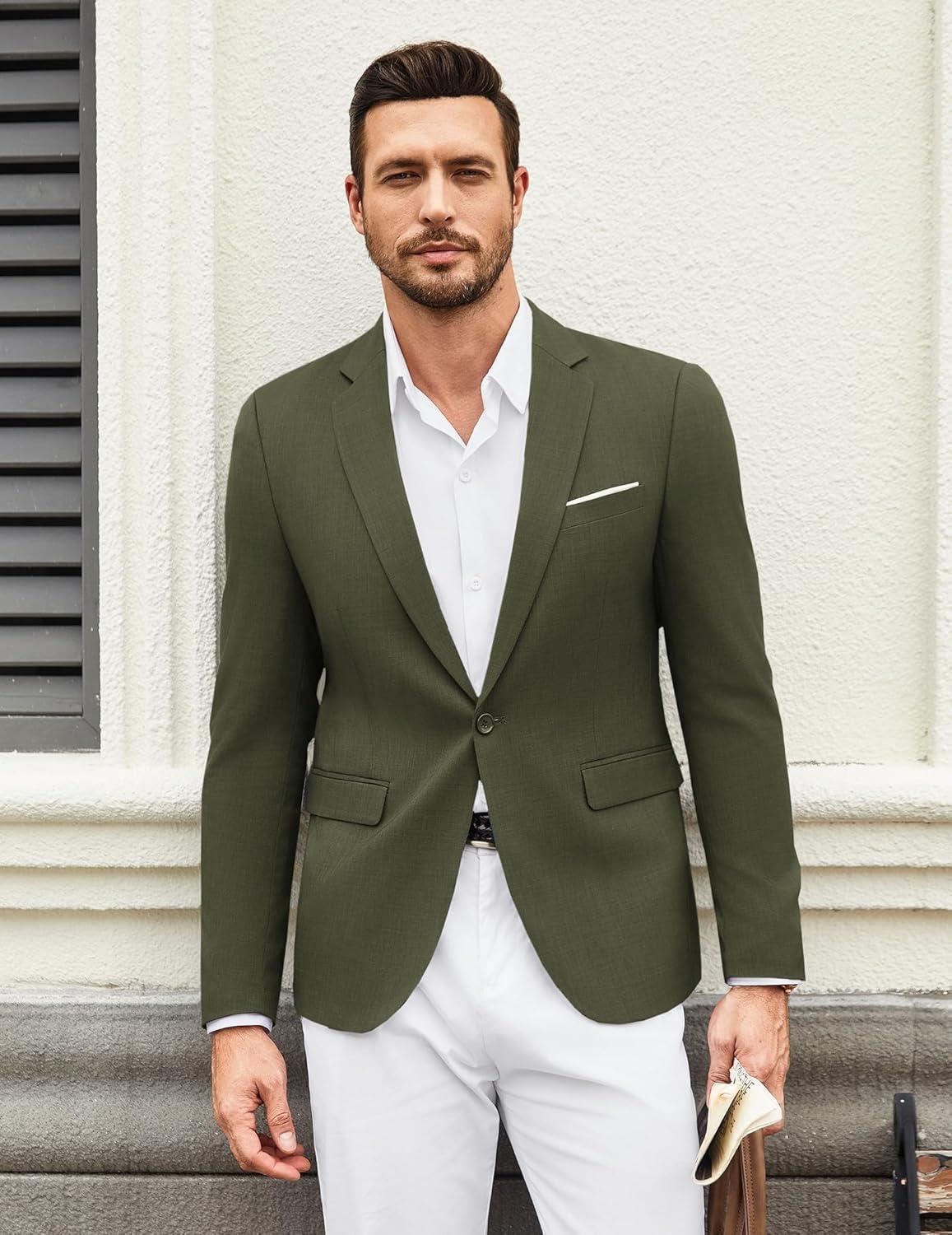 COOFANDY Mens Casual Blazer Suit Jackets One Button Sport Coats Lightweight Business Sports Jackets(Army Green)