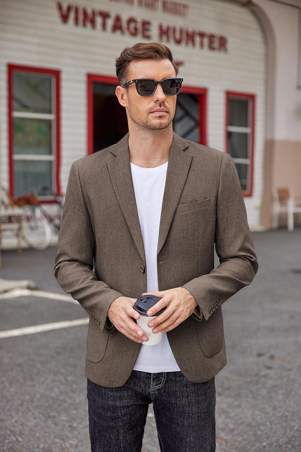 COOFANDY Men’s Casual Blazer Two Button Sport Coats Lightweight Printed Lining Suit Jacket(Brown)