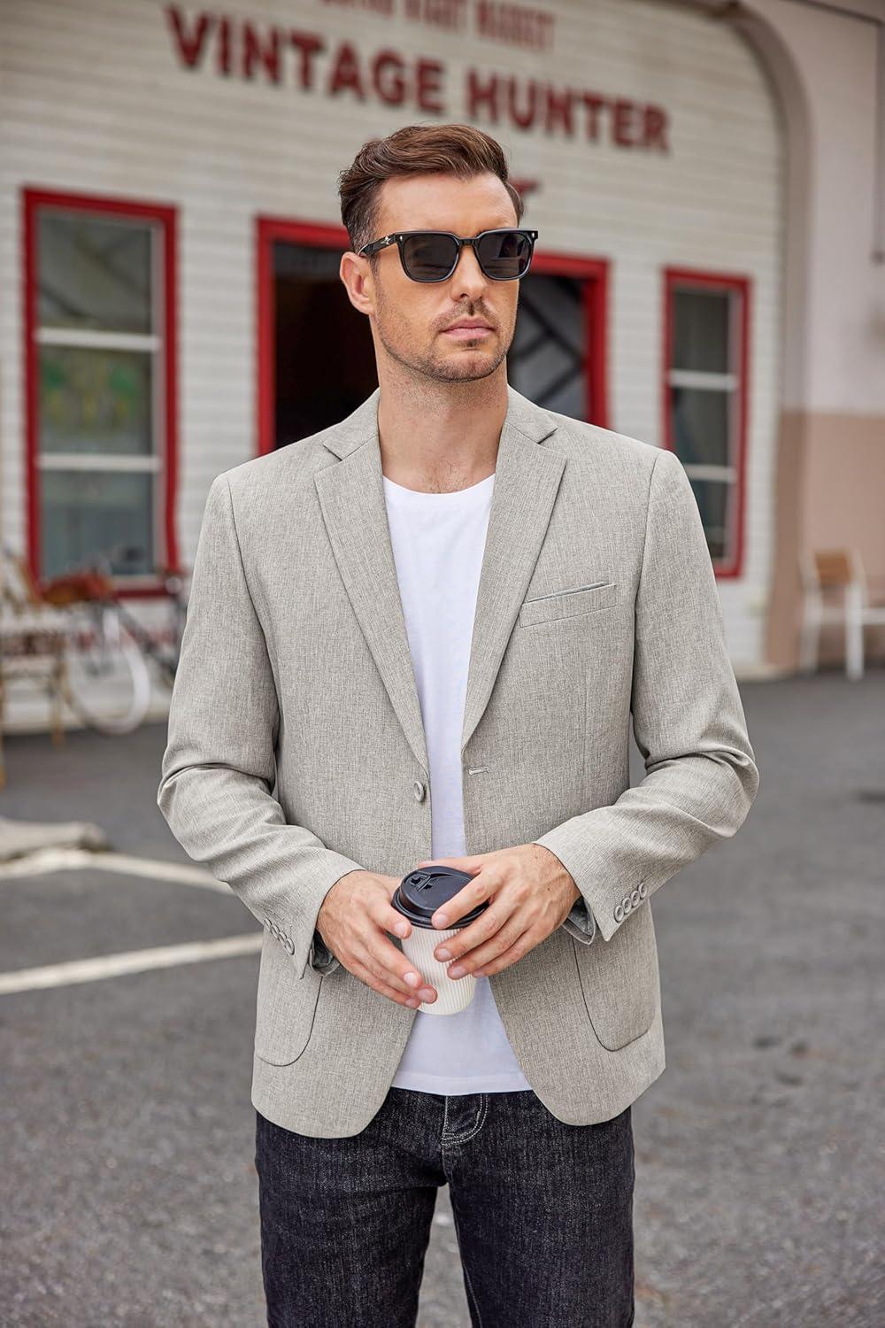 COOFANDY Men’s Casual Blazer Two Button Sport Coats Lightweight Printed Lining Suit Jacket(Light Grey)