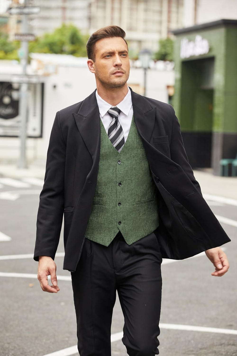 COOFANDY Men’s Casual Business Vests Lightweight Waistcoat Slim Fit Suit Vest(Army Green)