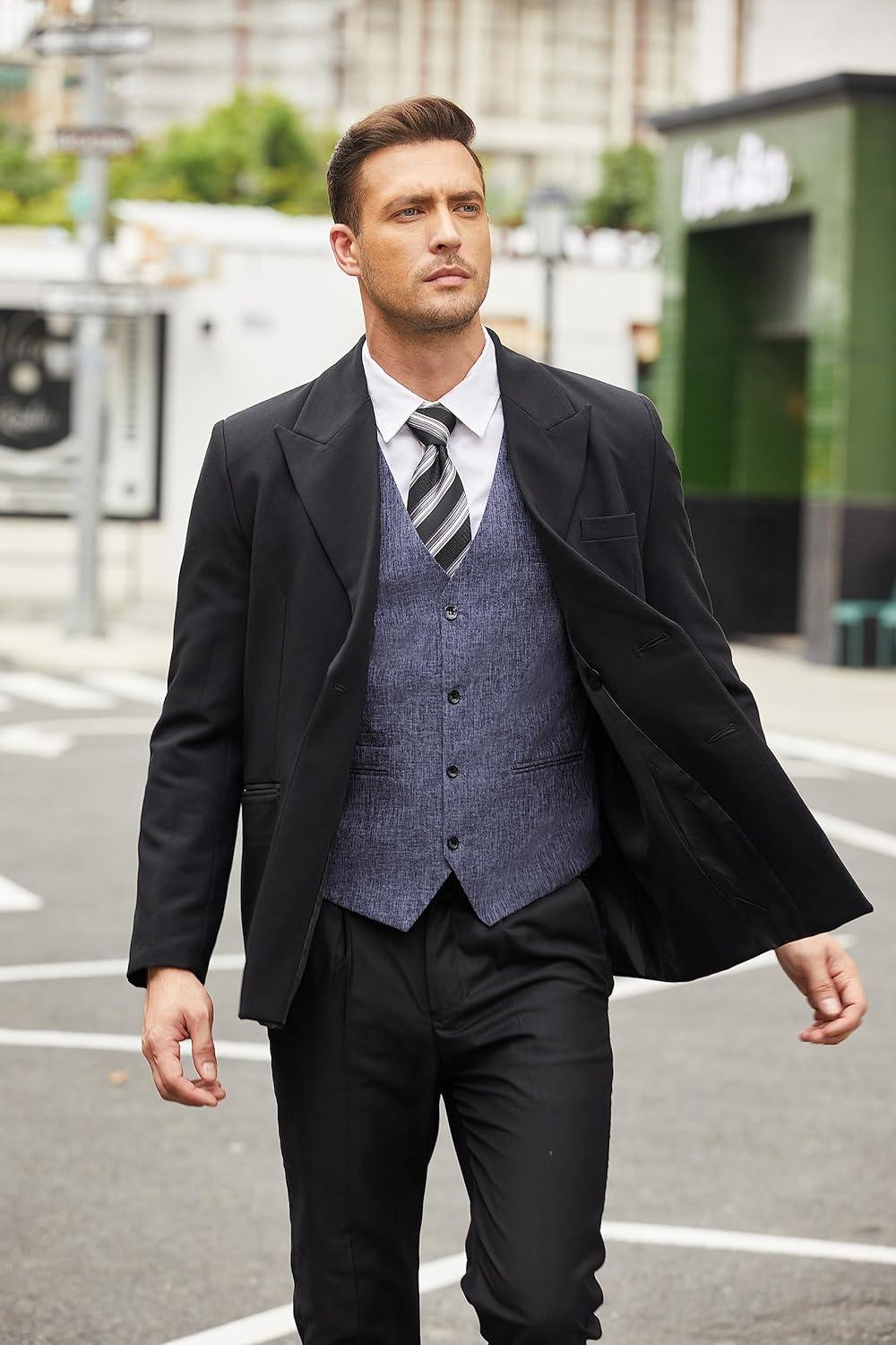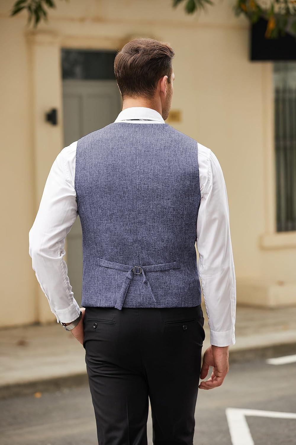 COOFANDY Men’s Casual Business Vests Lightweight Waistcoat Slim Fit Suit Vest(Blue)