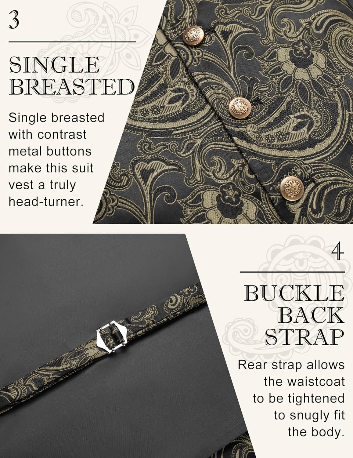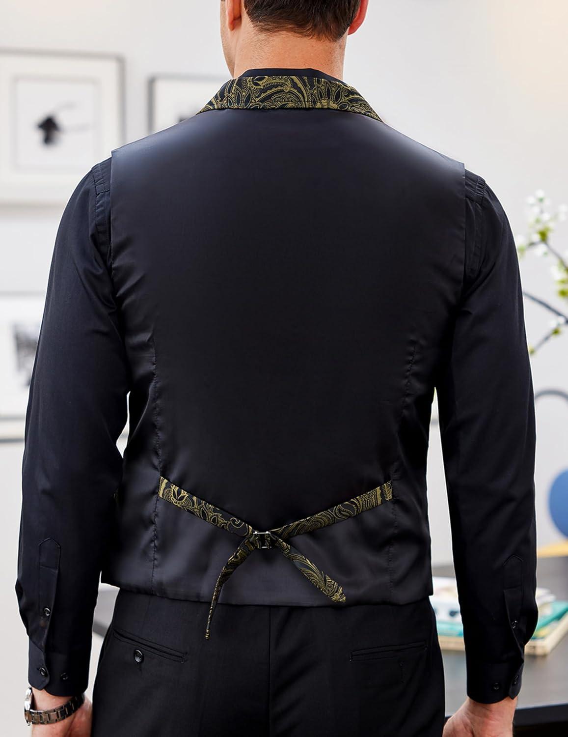COOFANDY Men’s Casual Business Vests Lightweight Waistcoat Slim Fit Suit Vest(Gold & Black)