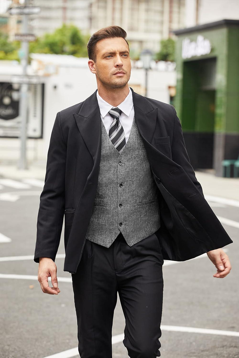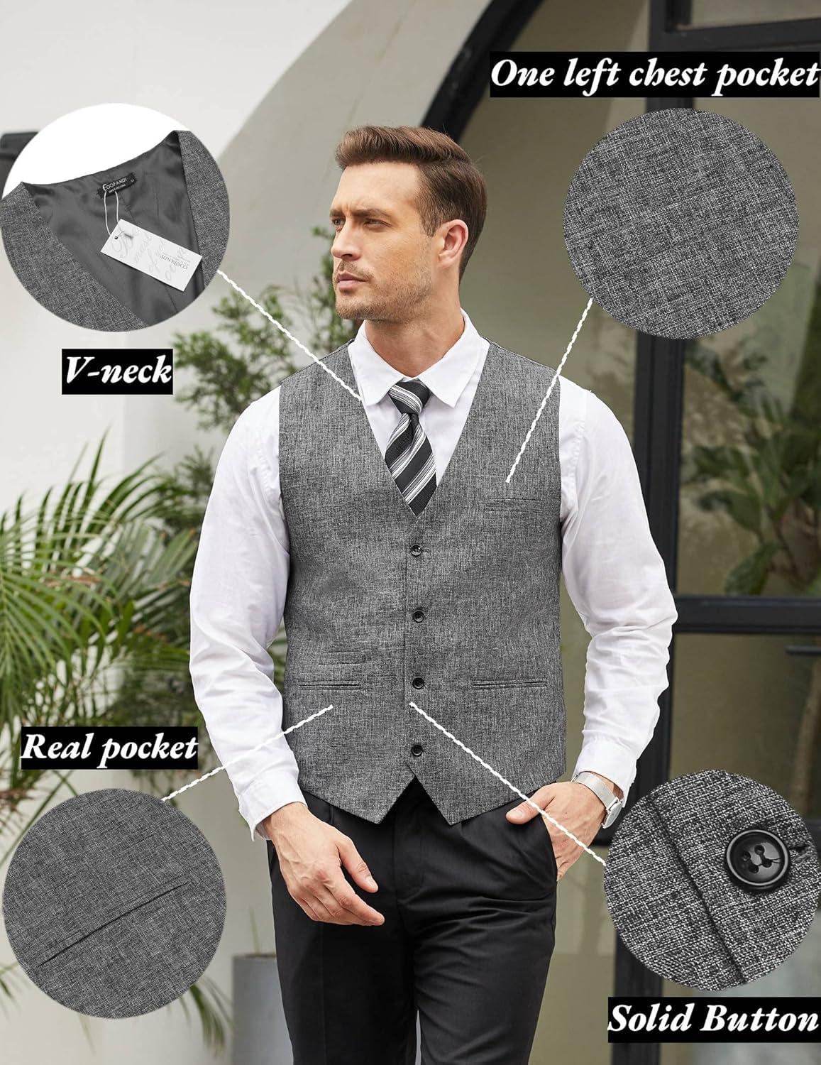 COOFANDY Men’s Casual Business Vests Lightweight Waistcoat Slim Fit Suit Vest(Grey)