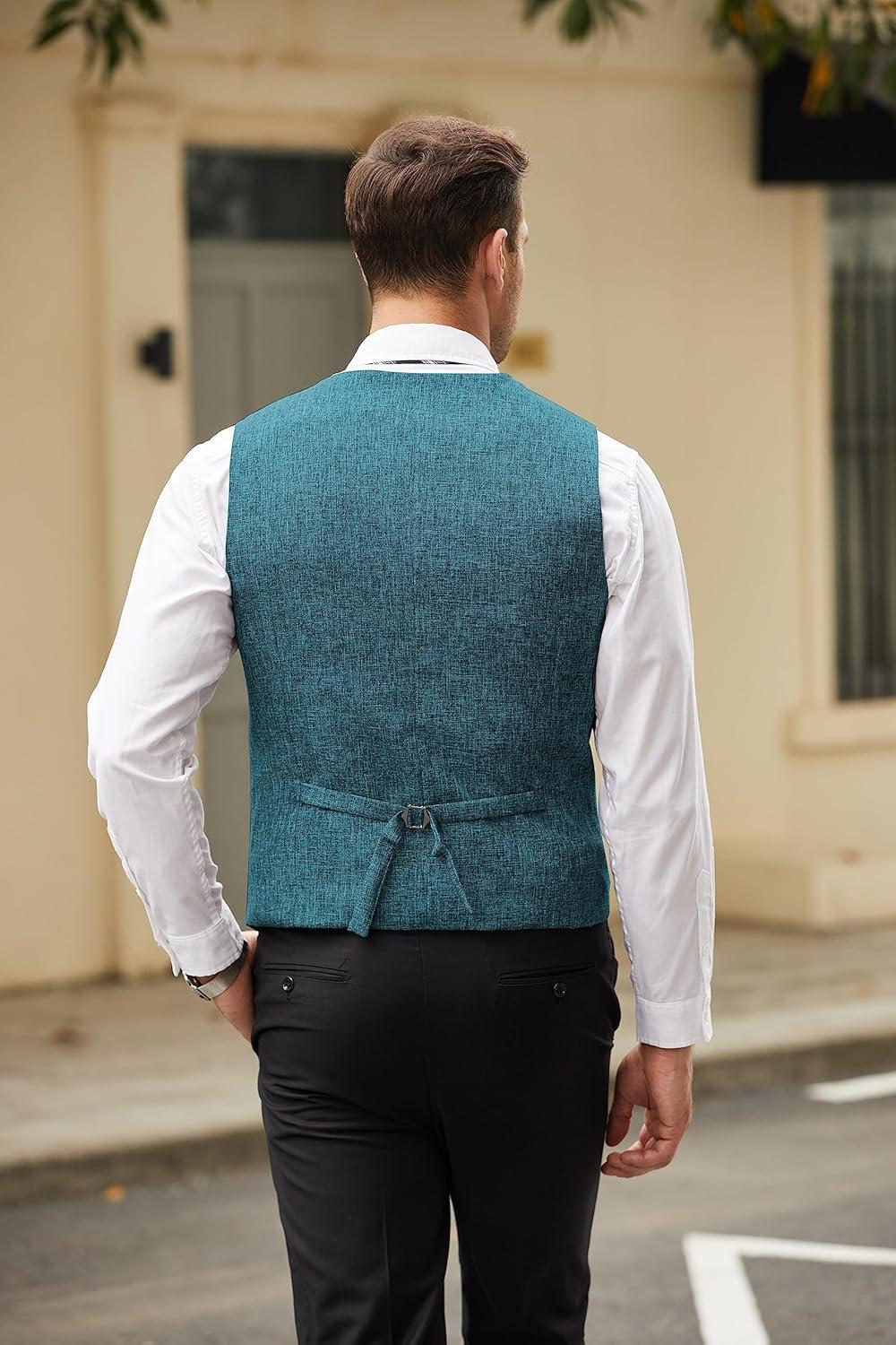 COOFANDY Men’s Casual Business Vests Lightweight Waistcoat Slim Fit Suit Vest(Peacock Blue)