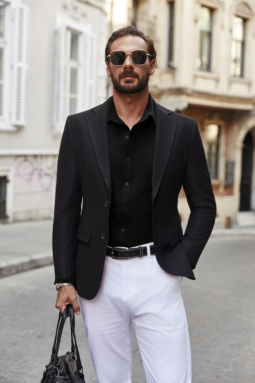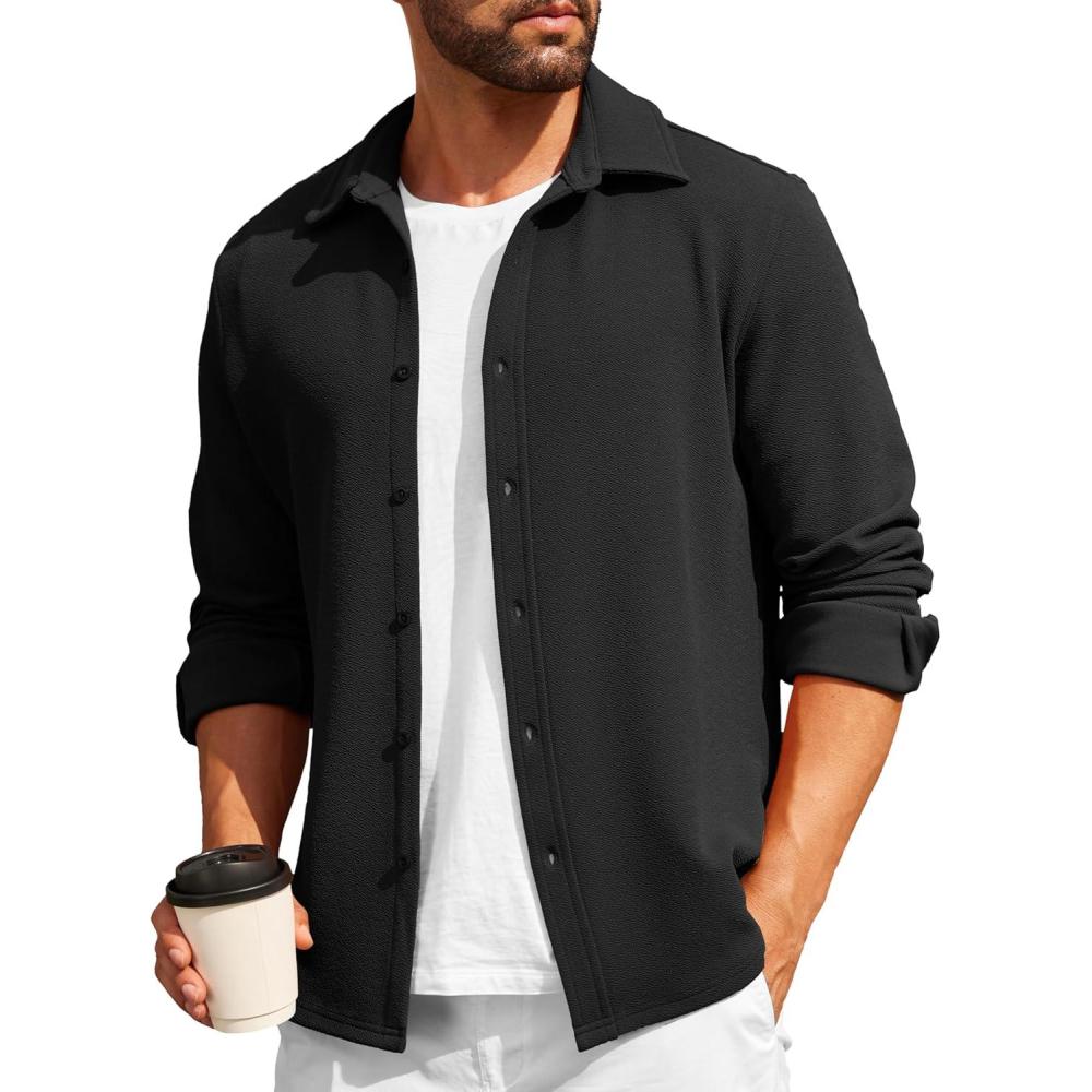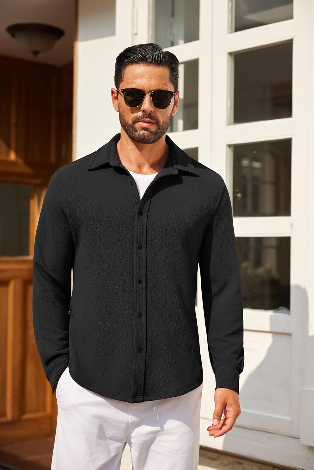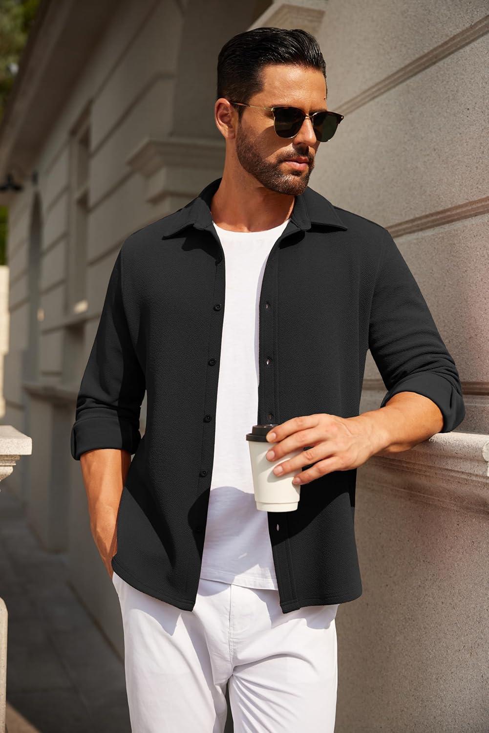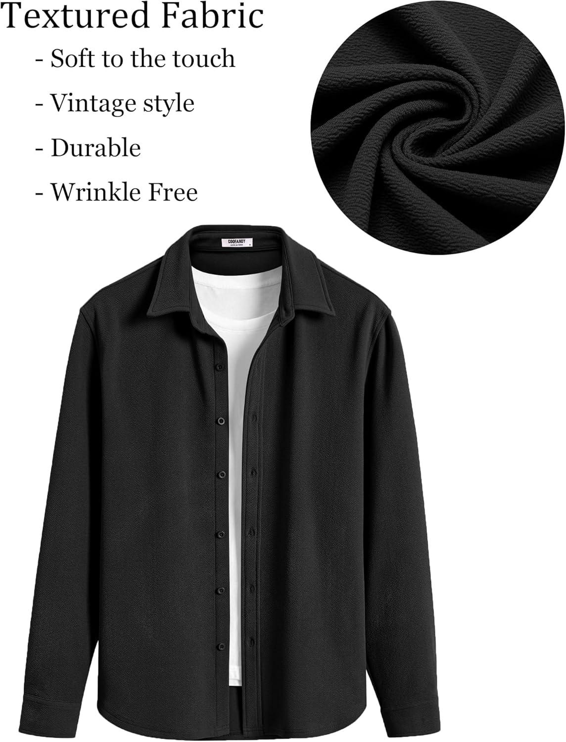 COOFANDY Mens Casual Button Down Shirt Long Sleeve Lightweight Jacket Fashion Textured Shirts(Black)