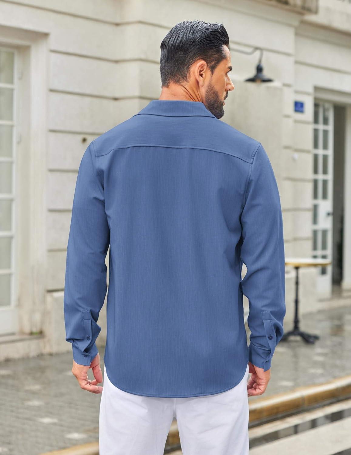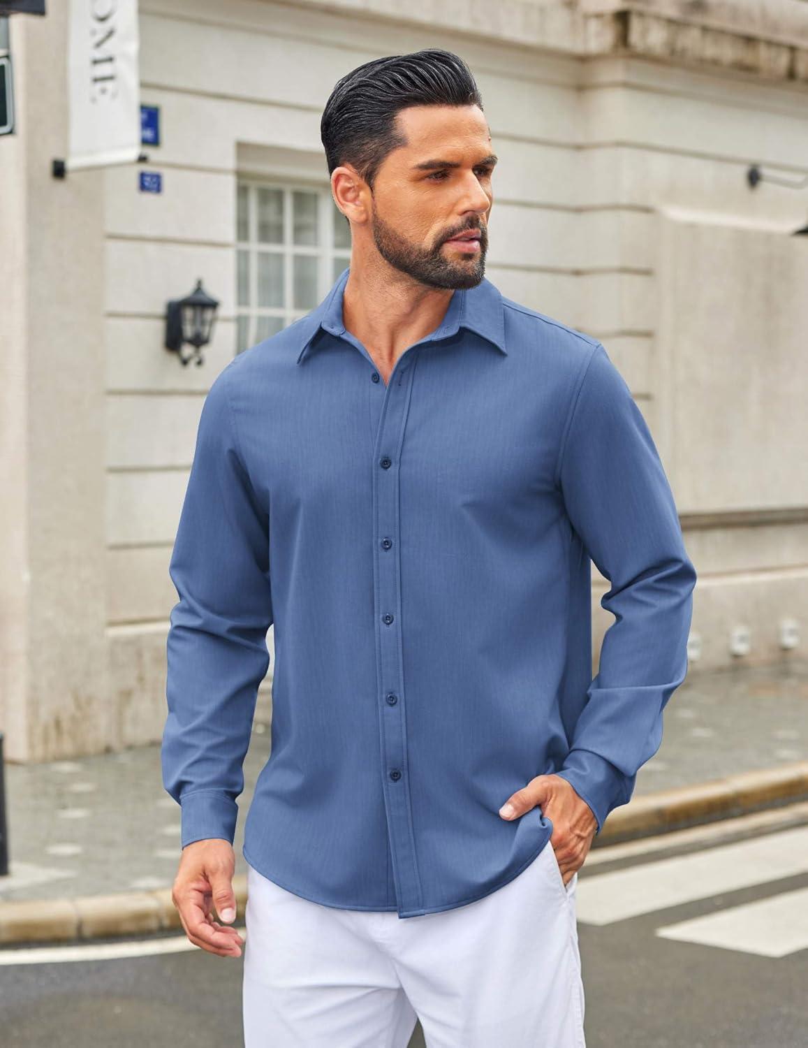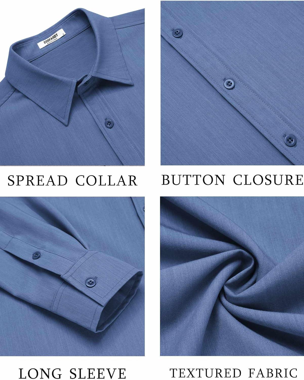 COOFANDY Men’s Casual Button Down Shirt Long Sleeve Untucked Shirt Wrinkle Free Denim Dress Shirt(Denim Blue)