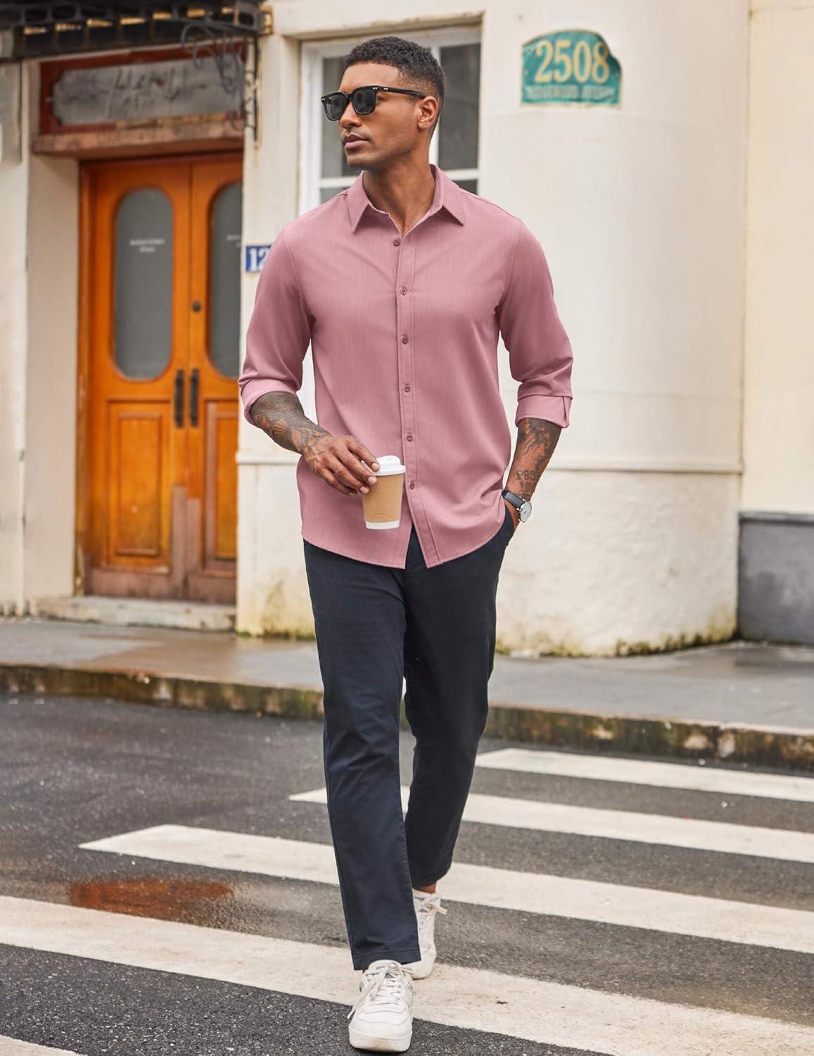 Be the first to review “COOFANDY Men’s Casual Button Down Shirt Long Sleeve Untucked Shirt Wrinkle Free Denim Dress Shirt(Purple Red)”