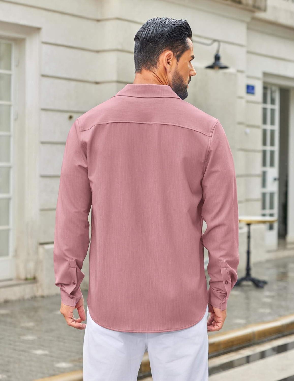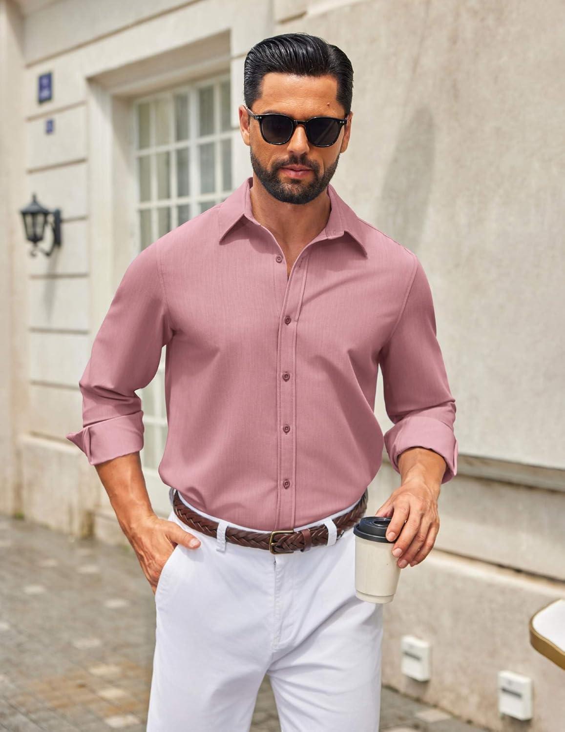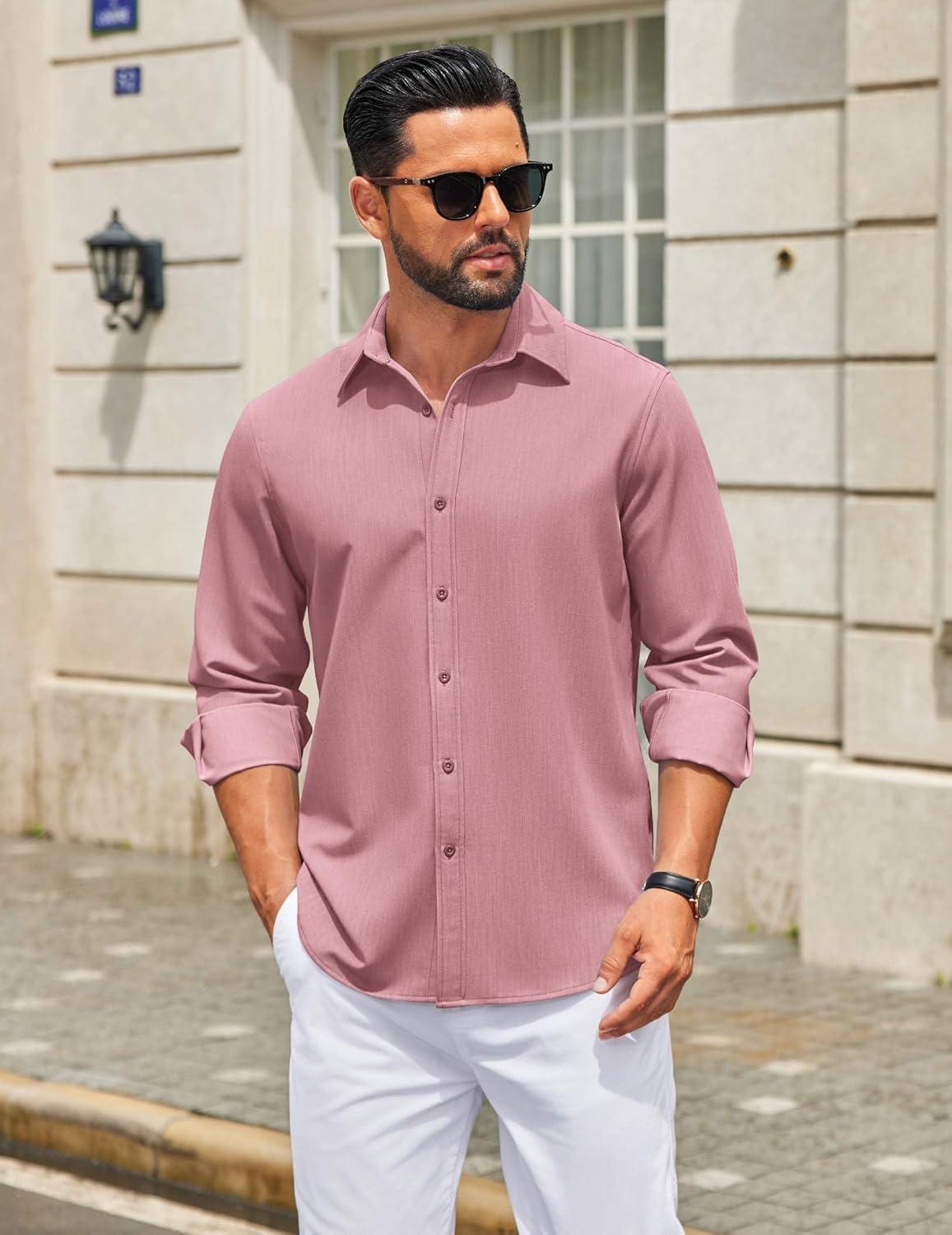 COOFANDY Men’s Casual Button Down Shirt Long Sleeve Untucked Shirt Wrinkle Free Denim Dress Shirt(Purple Red)