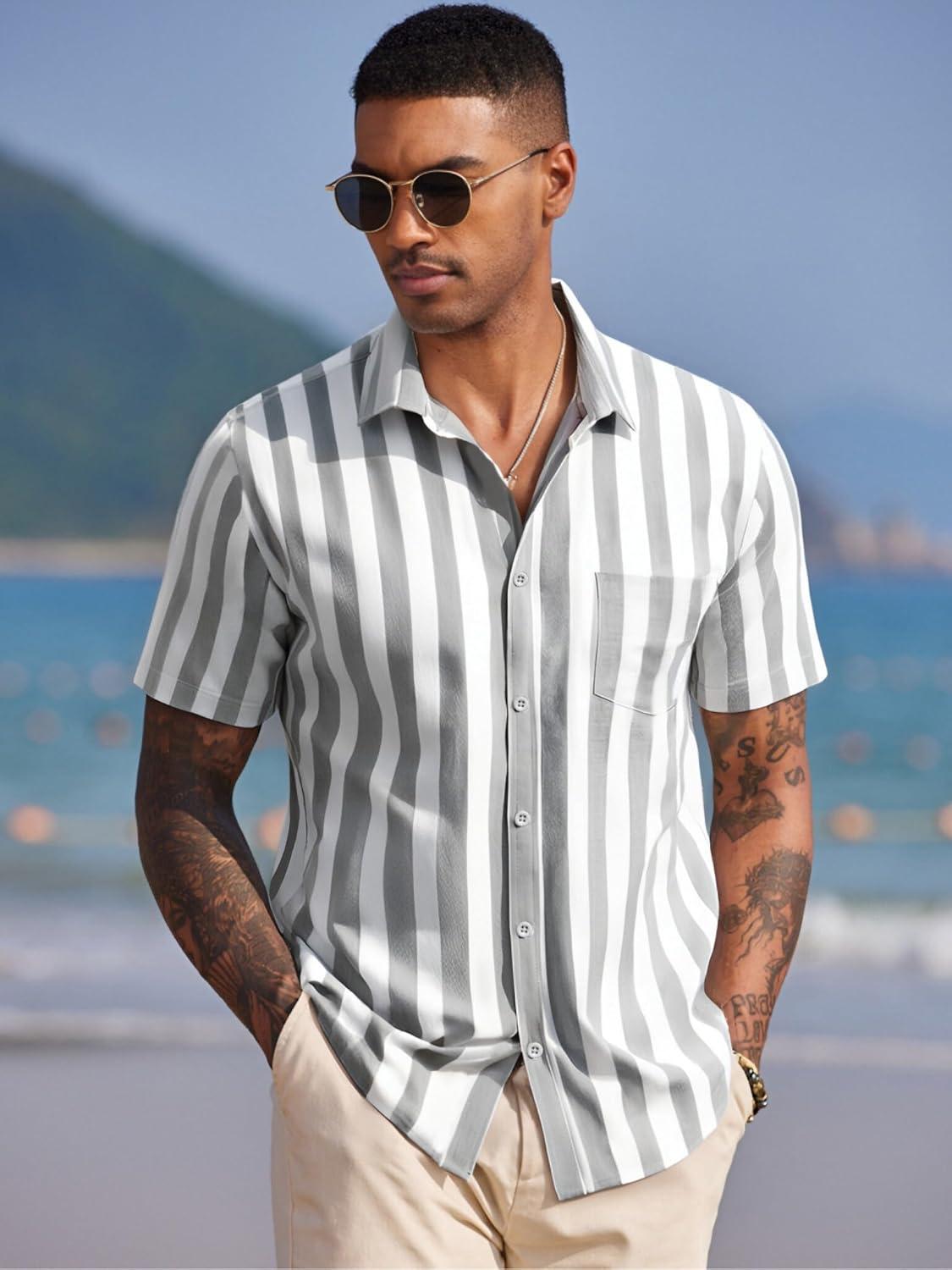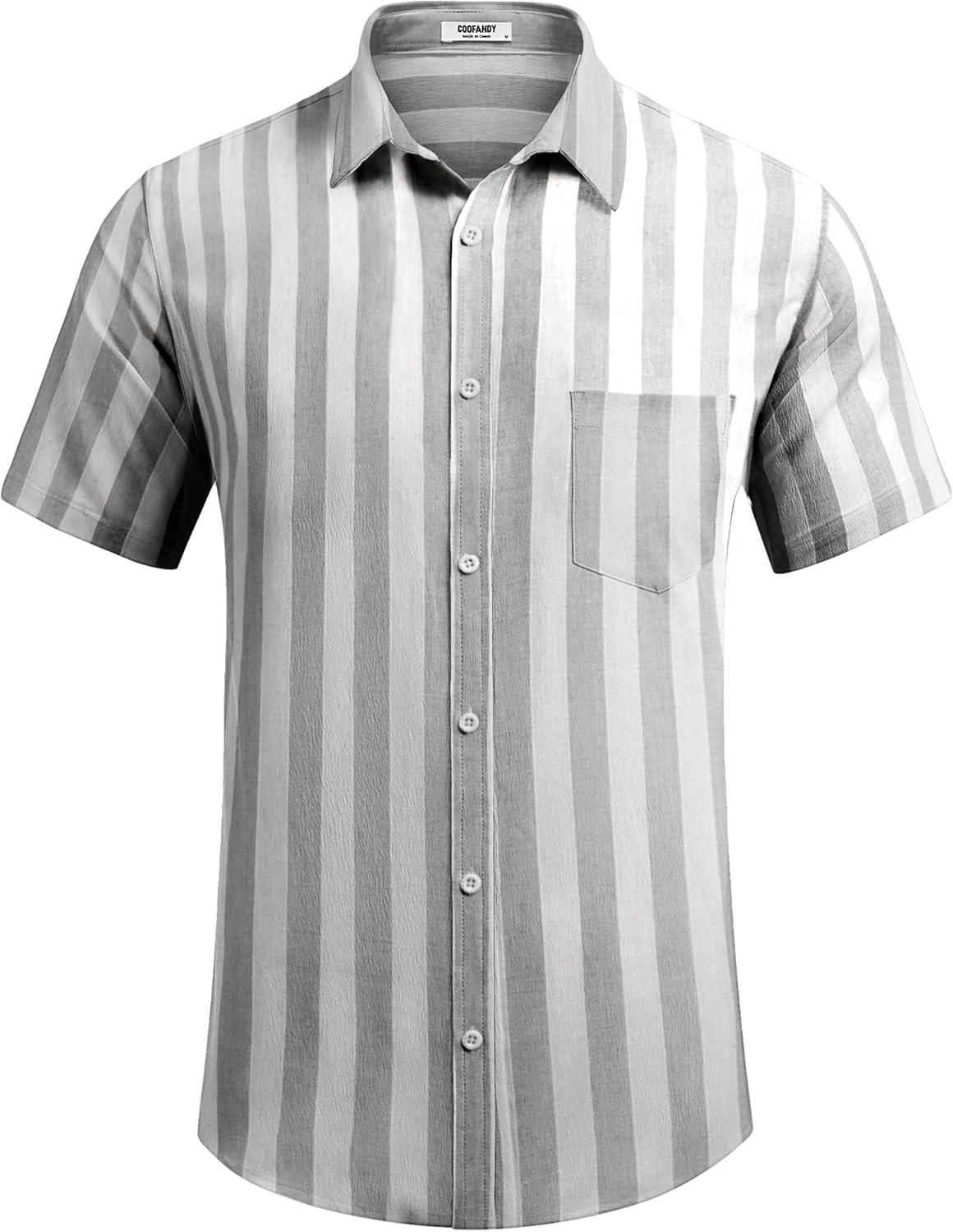 COOFANDY Men’s Casual Button Down Shirt Short Sleeve Textured Summer Cuban Beach Shirts(Island Sunset-red)