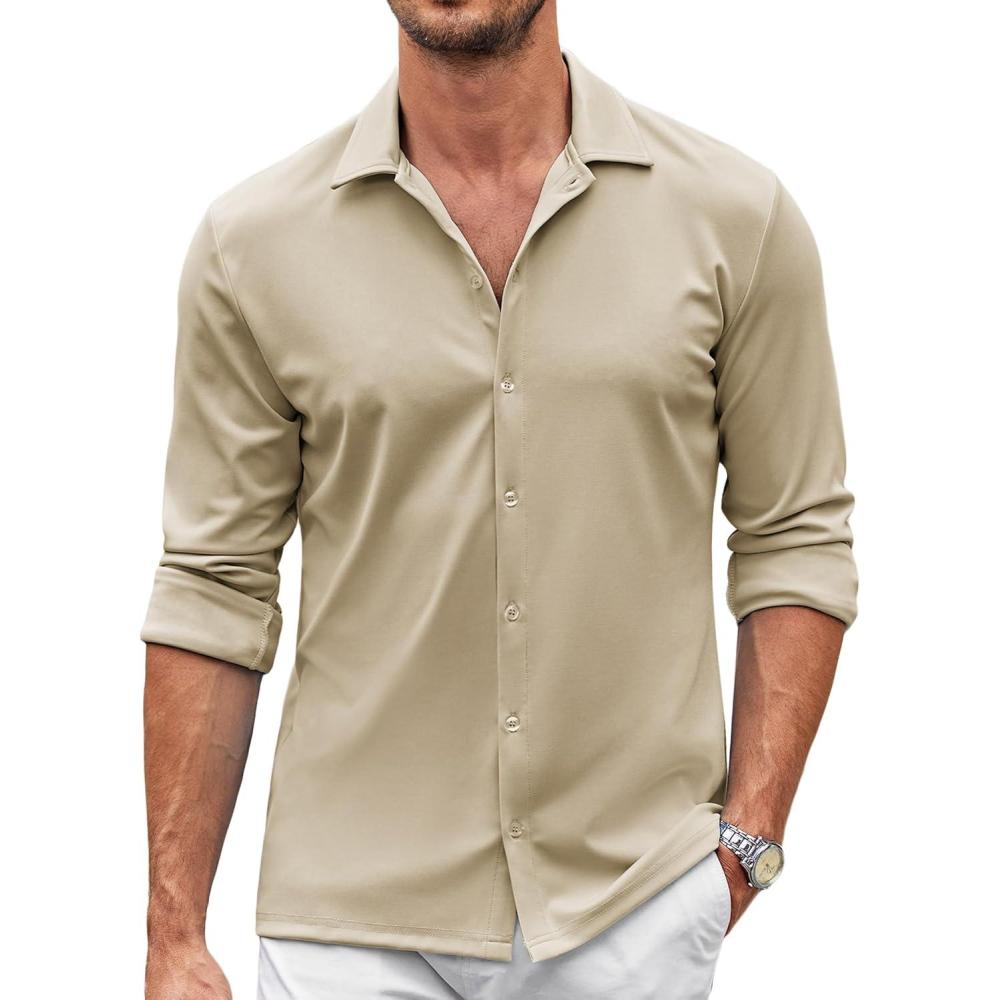 COOFANDY Men’s Casual Button Down Shirt Wrinkle Free Shirts Long Sleeve Dress Shirt(Khaki)
