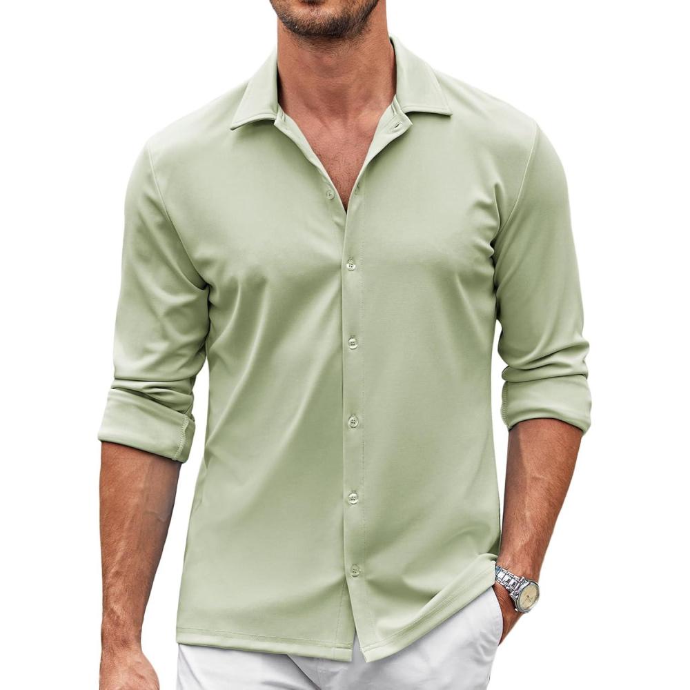 COOFANDY Men’s Casual Button Down Shirt Wrinkle Free Shirts Long Sleeve Dress Shirt(Light Green)