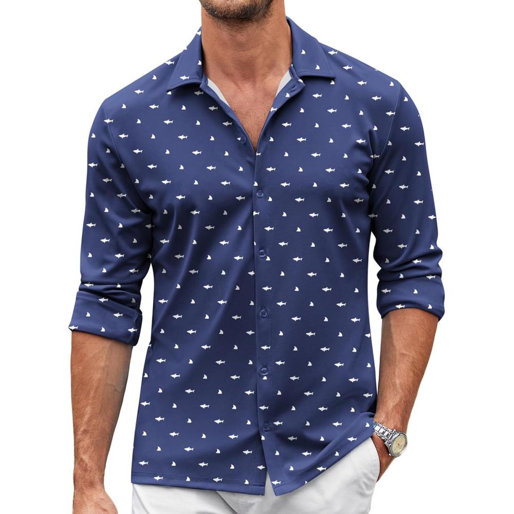 COOFANDY Men’s Casual Button Down Shirt Wrinkle Free Shirts Long Sleeve Dress Shirt(Navy Shark)