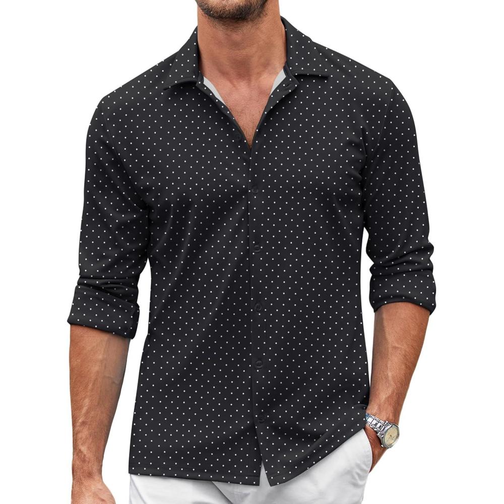 COOFANDY Men’s Casual Button Down Shirt Wrinkle Free Shirts Long Sleeve Dress Shirt(White Spots Black)
