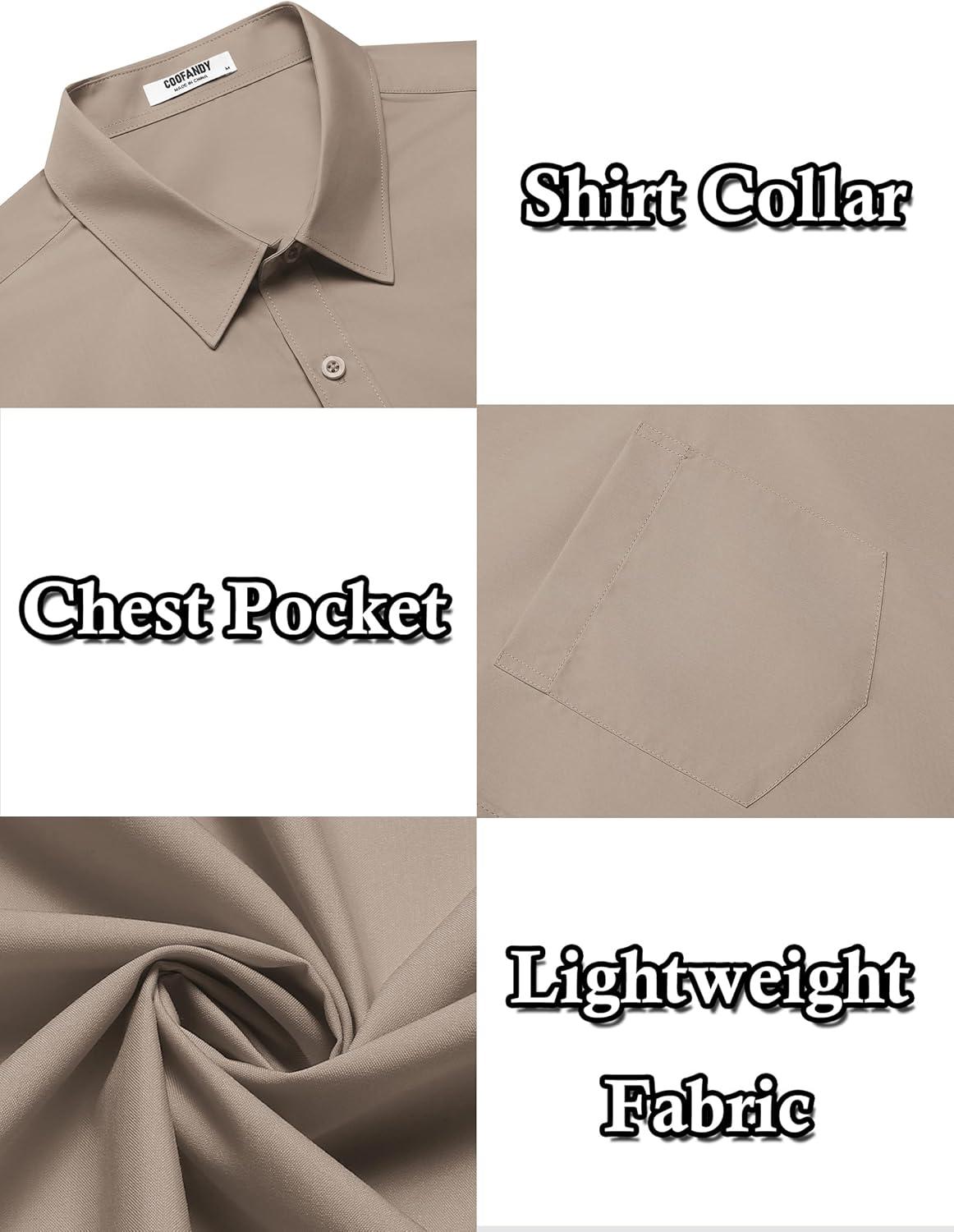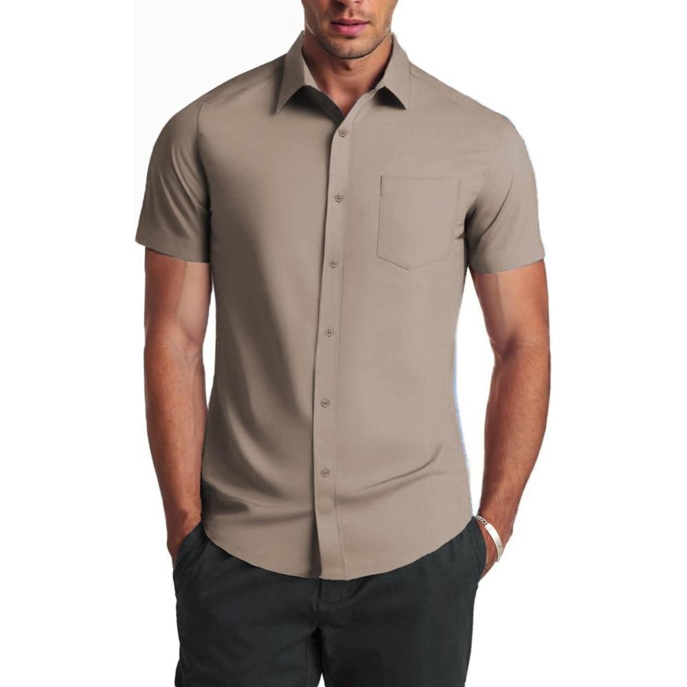 COOFANDY Mens Casual Button Down Shirts Lightweight Short Sleeve Shirts(Khaki)