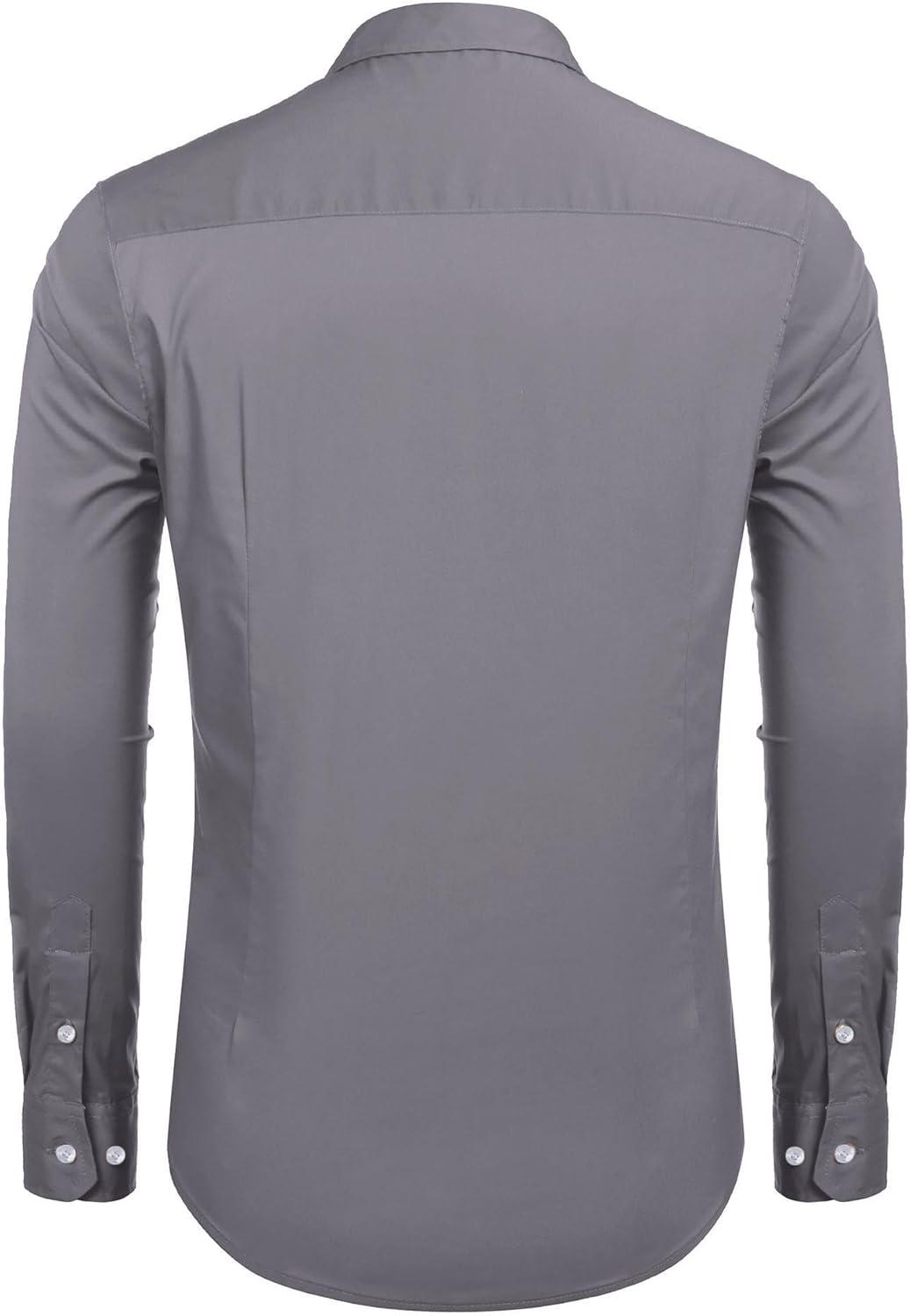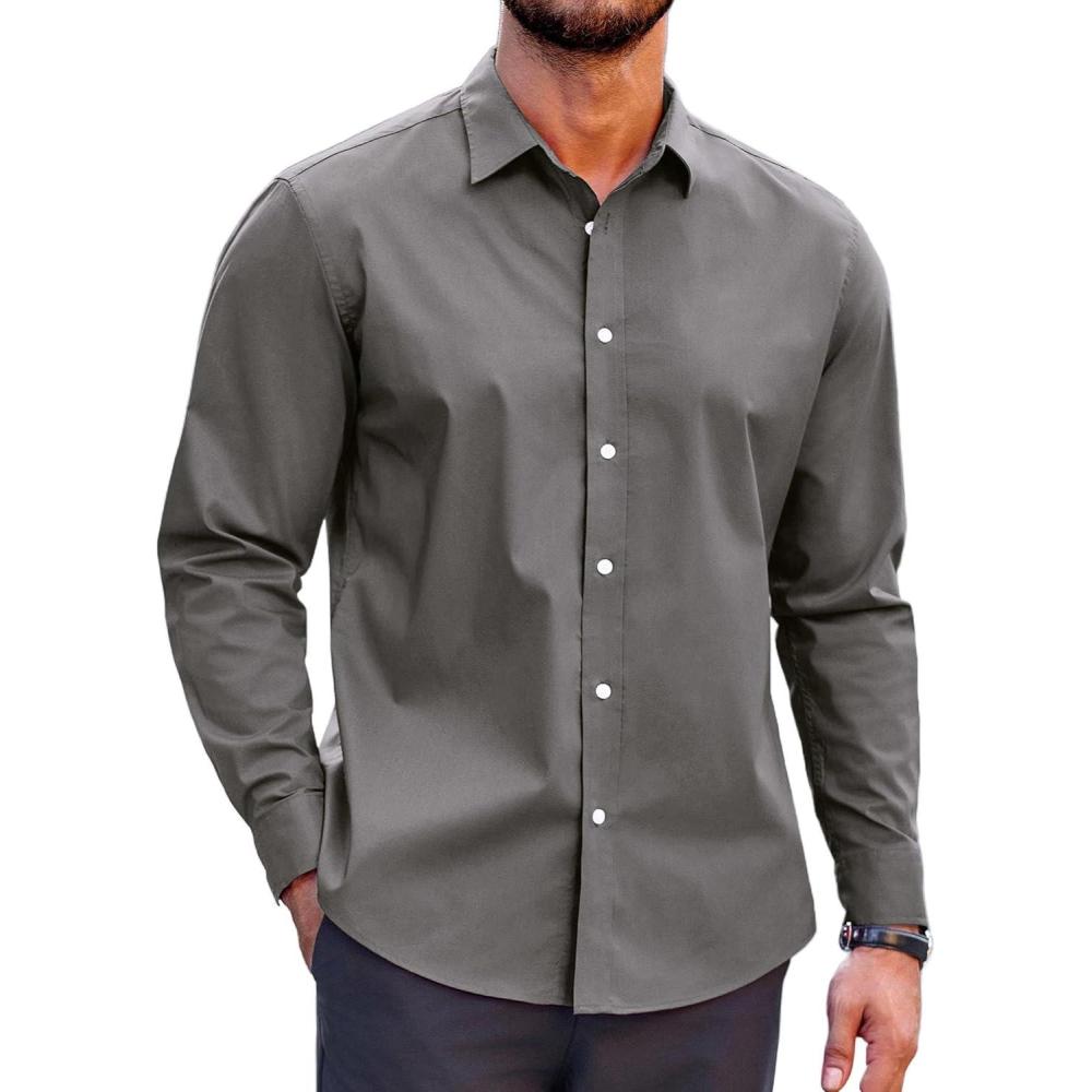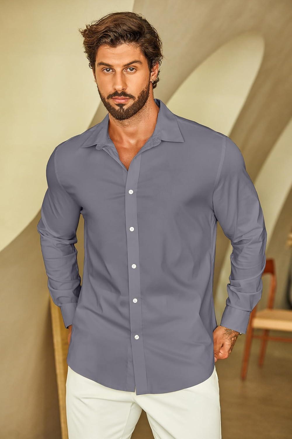 COOFANDY Mens Casual Button Down Shirts Long Sleeve Untucked Shirts for Men Stretch Dress Shirt(Grey)