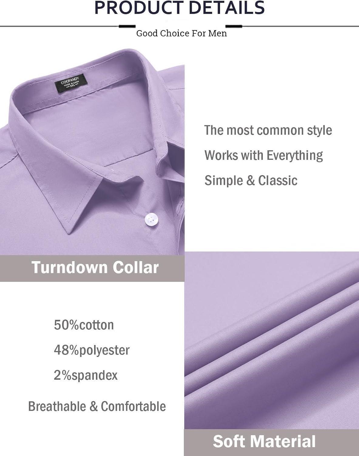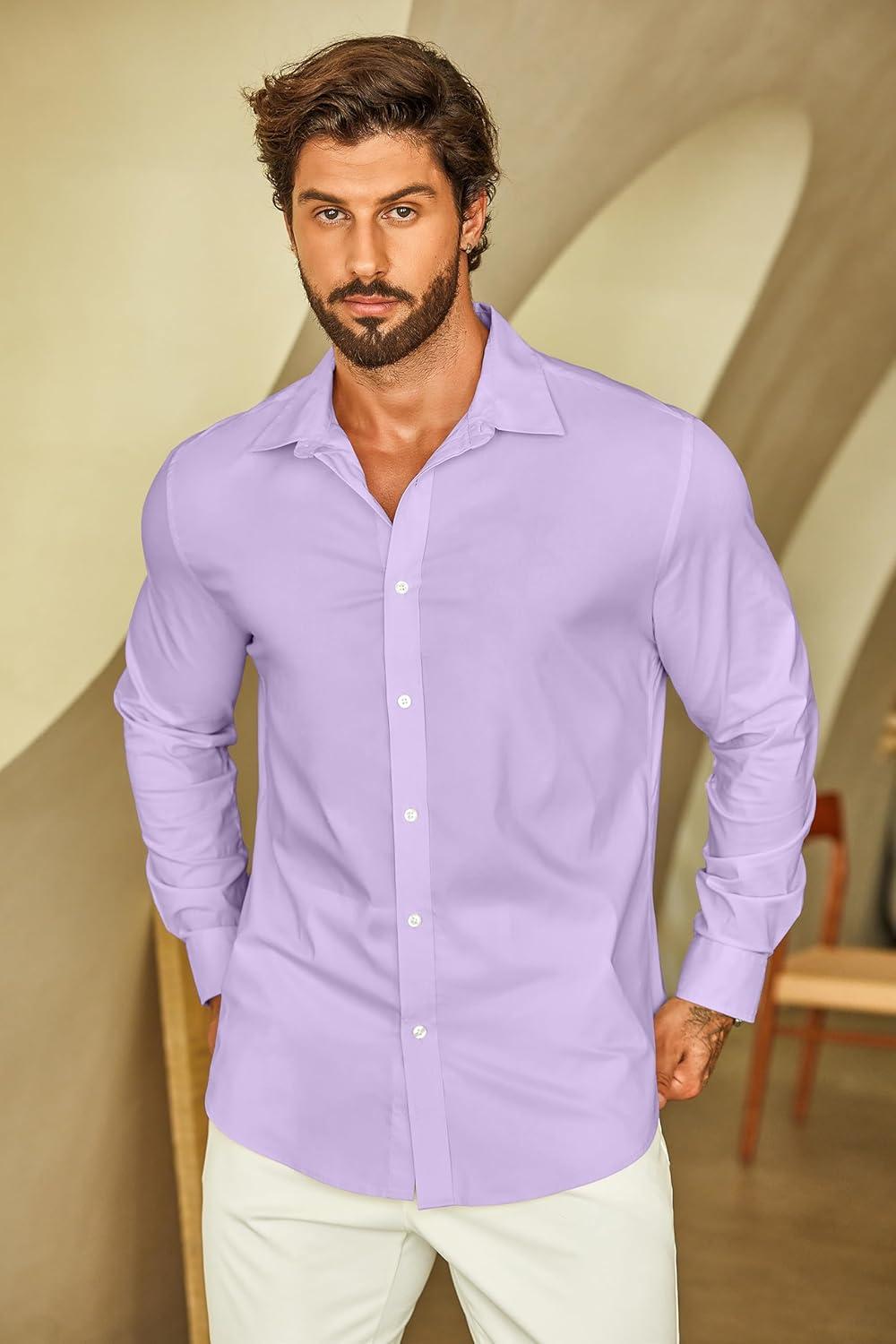 COOFANDY Mens Casual Button Down Shirts Long Sleeve Untucked Shirts for Men Stretch Dress Shirt(Lavender)