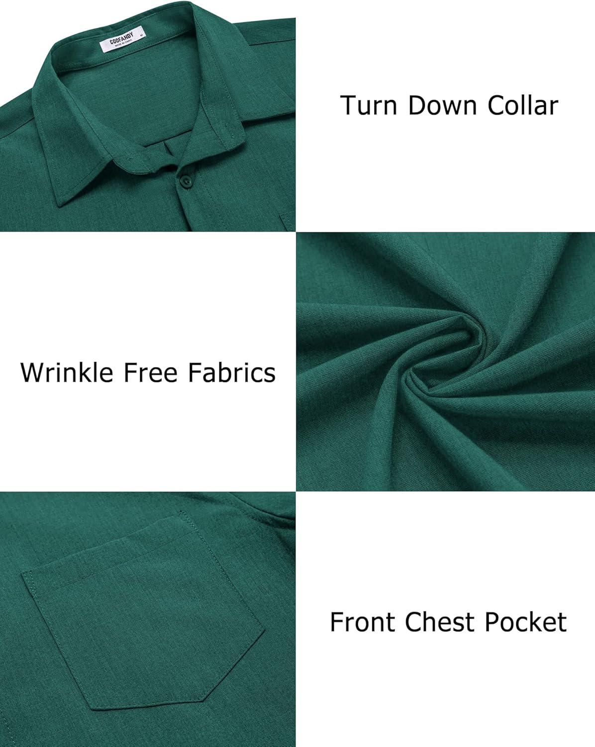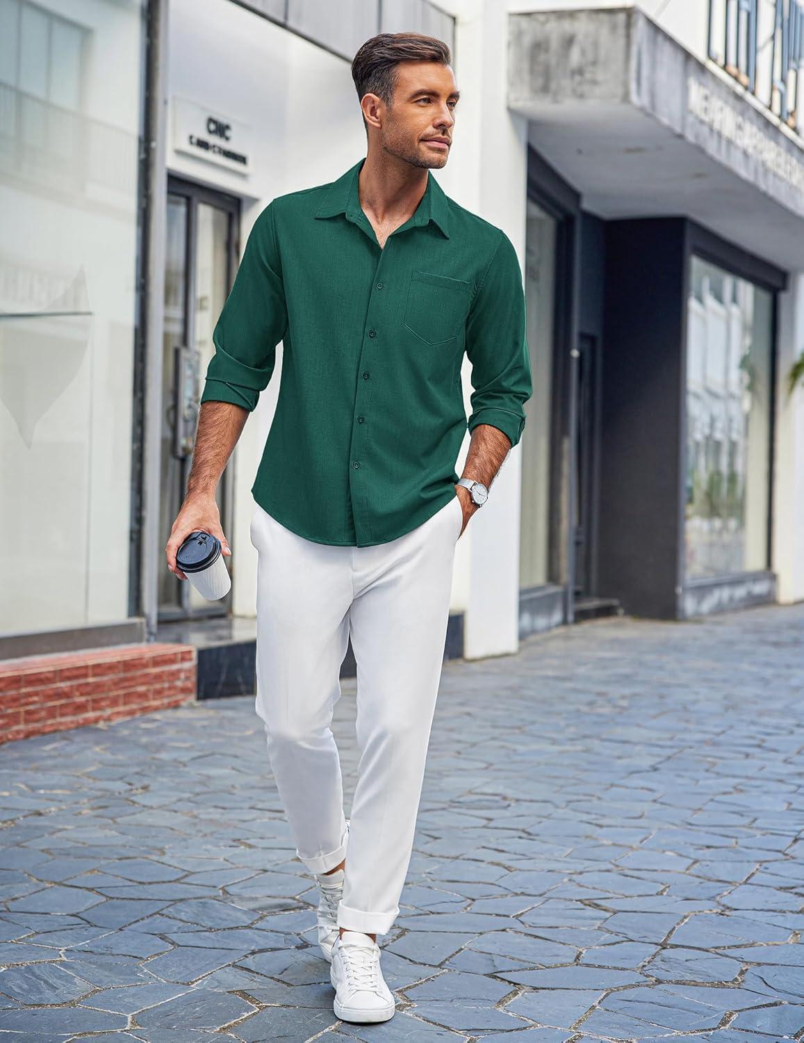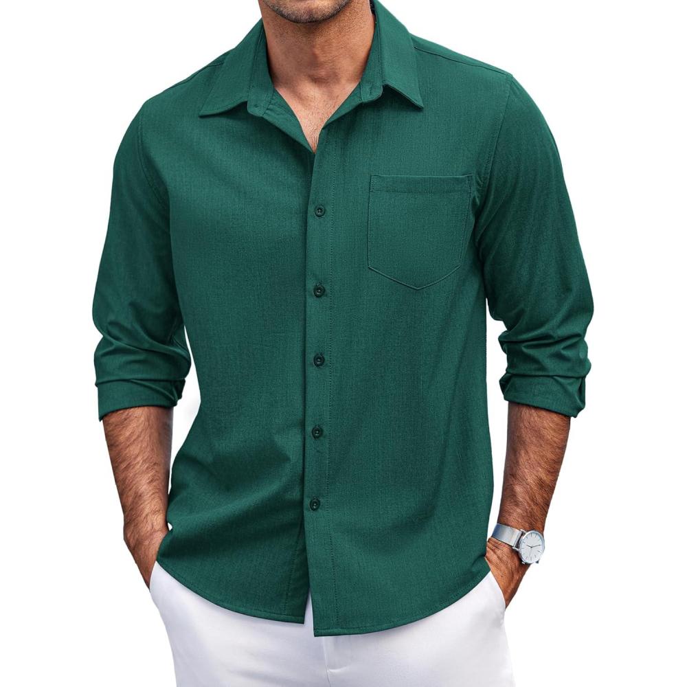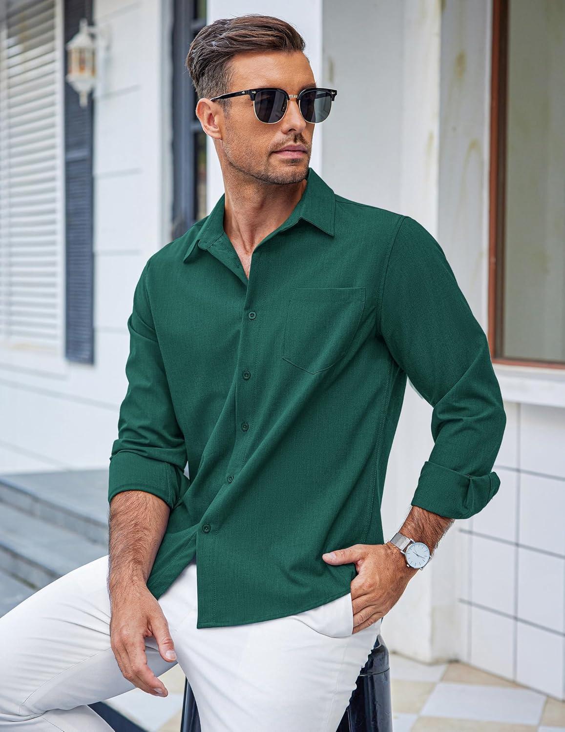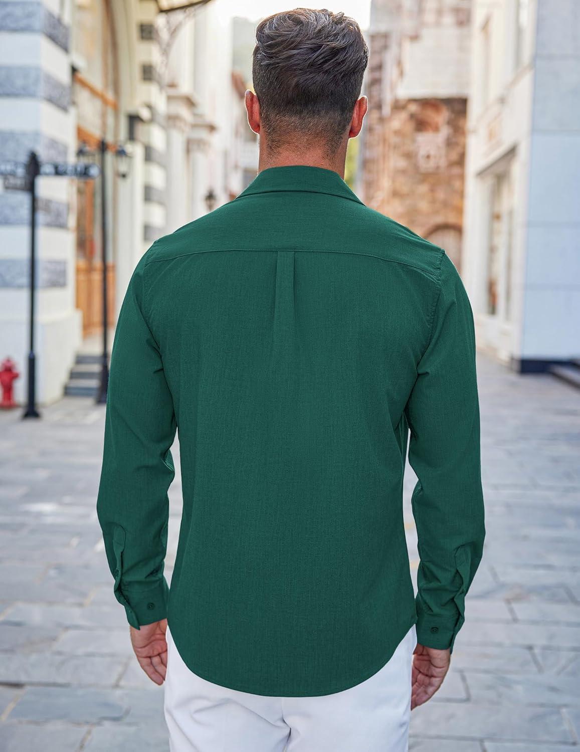 COOFANDY Men’s Casual Button Down Shirts Long Sleeve Untucked Shirts Regular Fit Linen Shirt(Dark Green)
