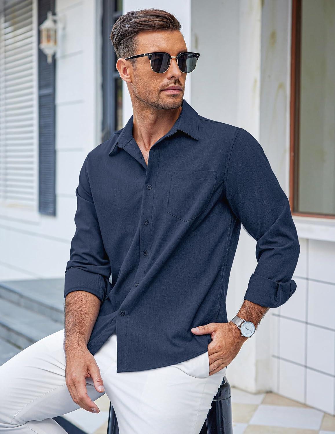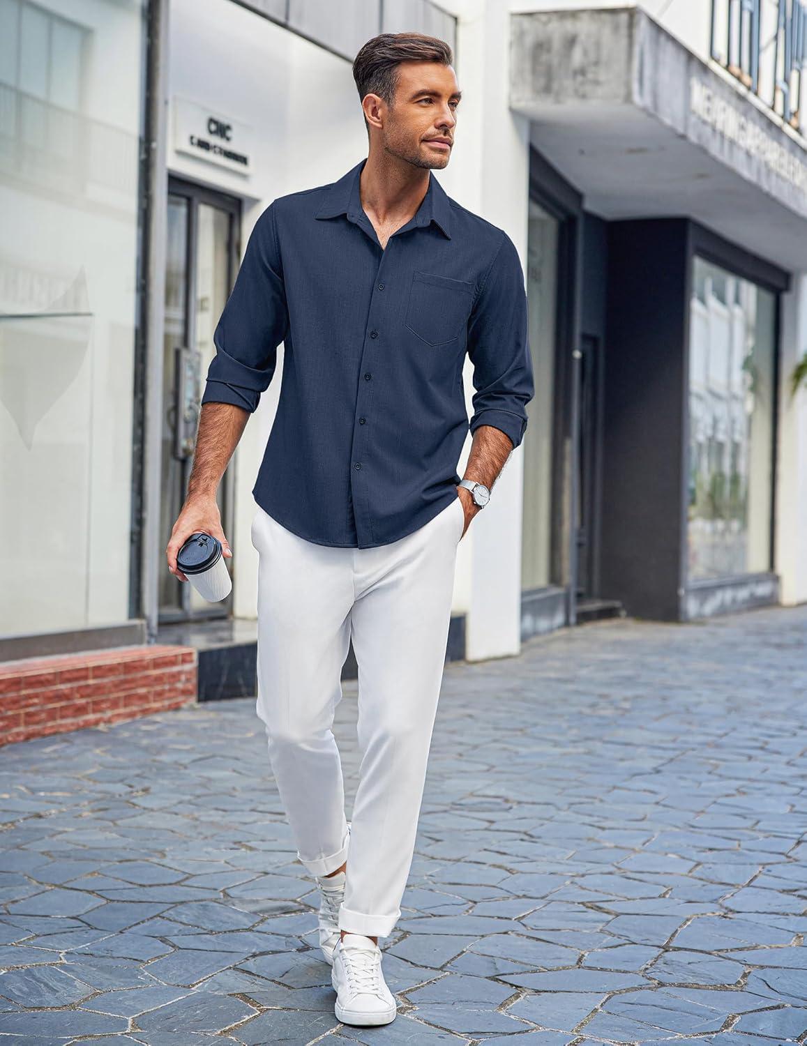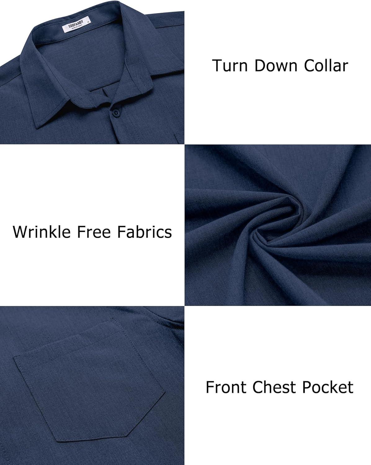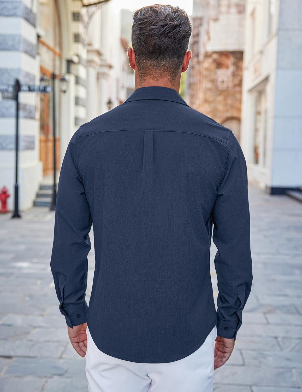 COOFANDY Men’s Casual Button Down Shirts Long Sleeve Untucked Shirts Regular Fit Linen Shirt(Navy Blue)