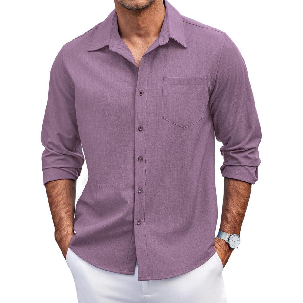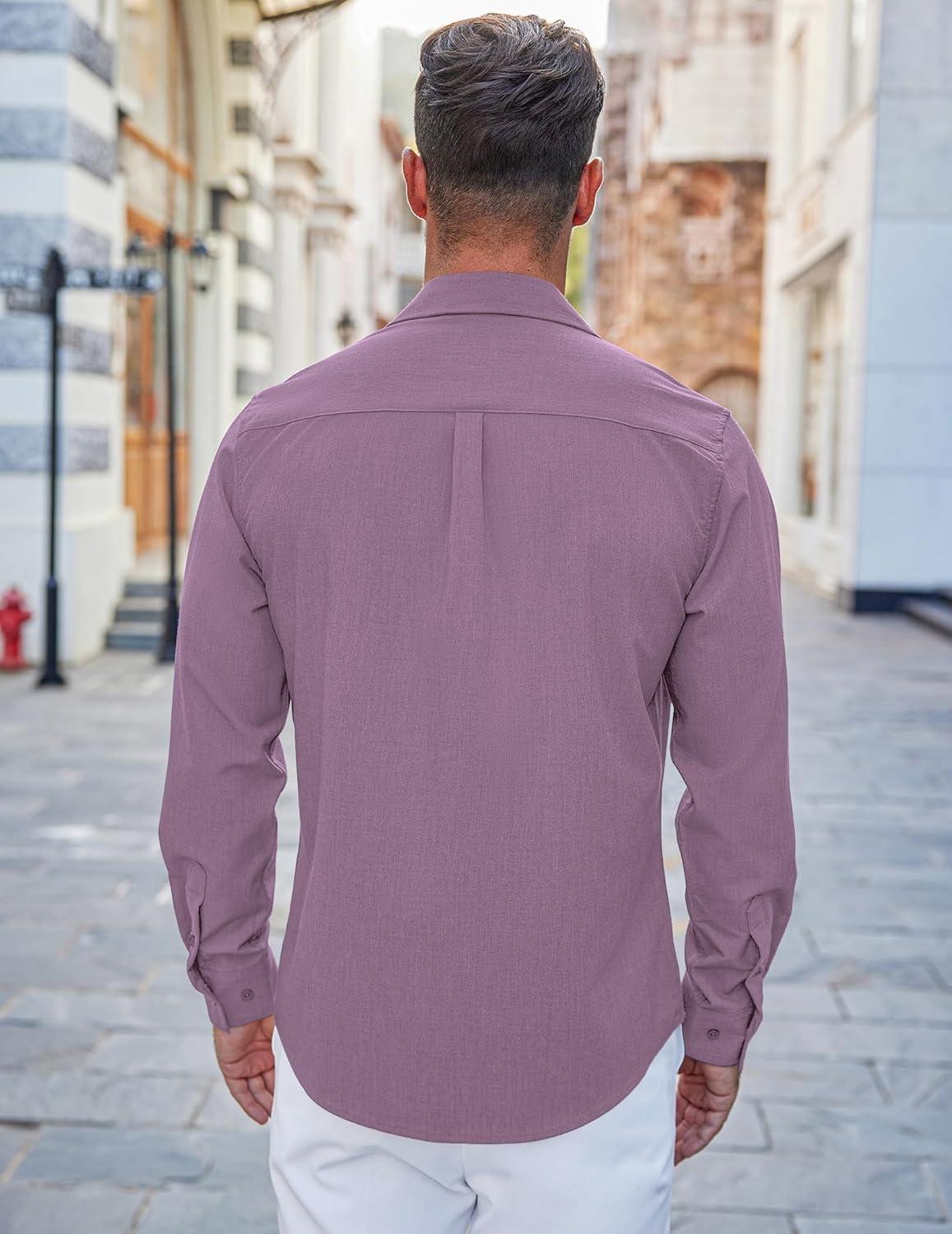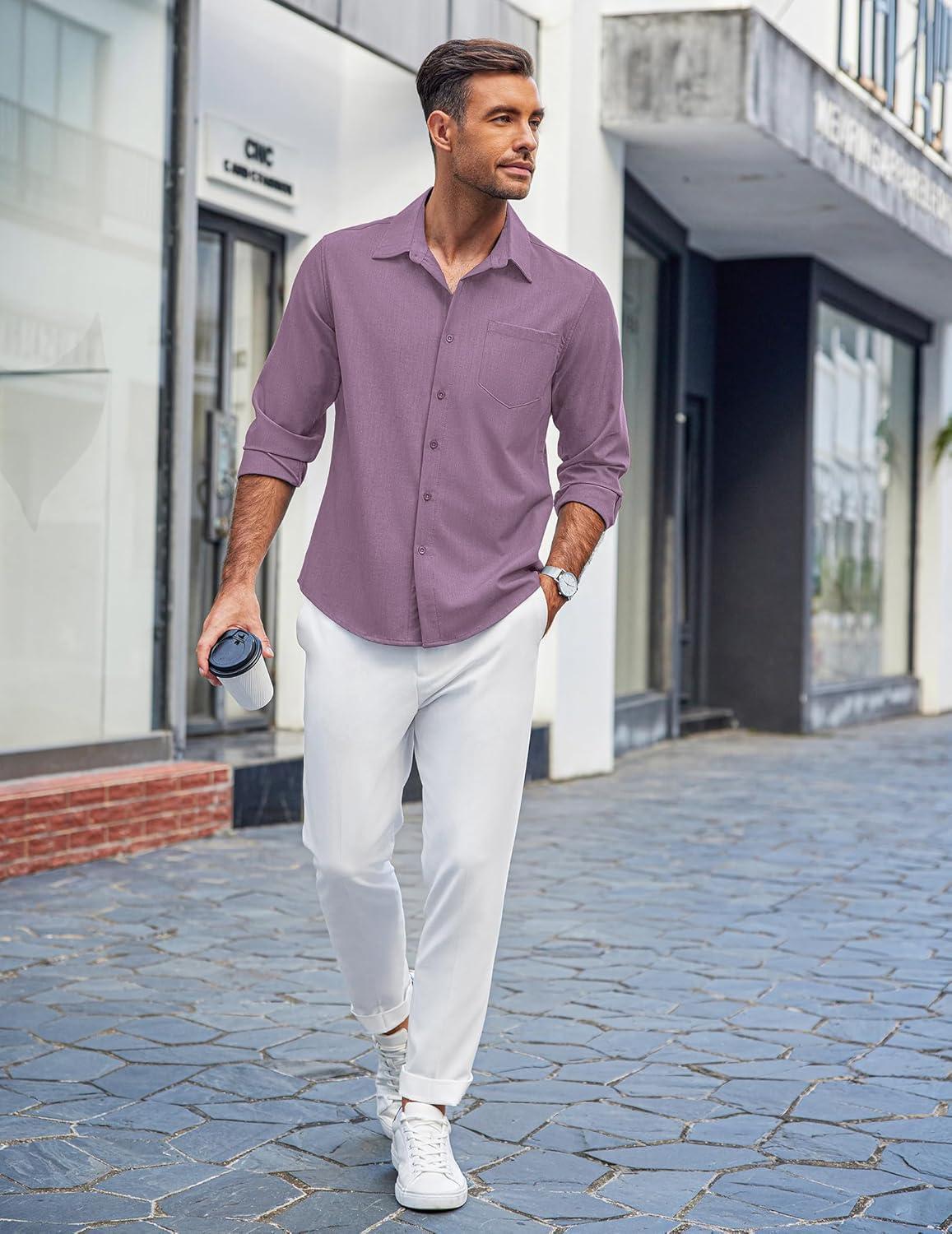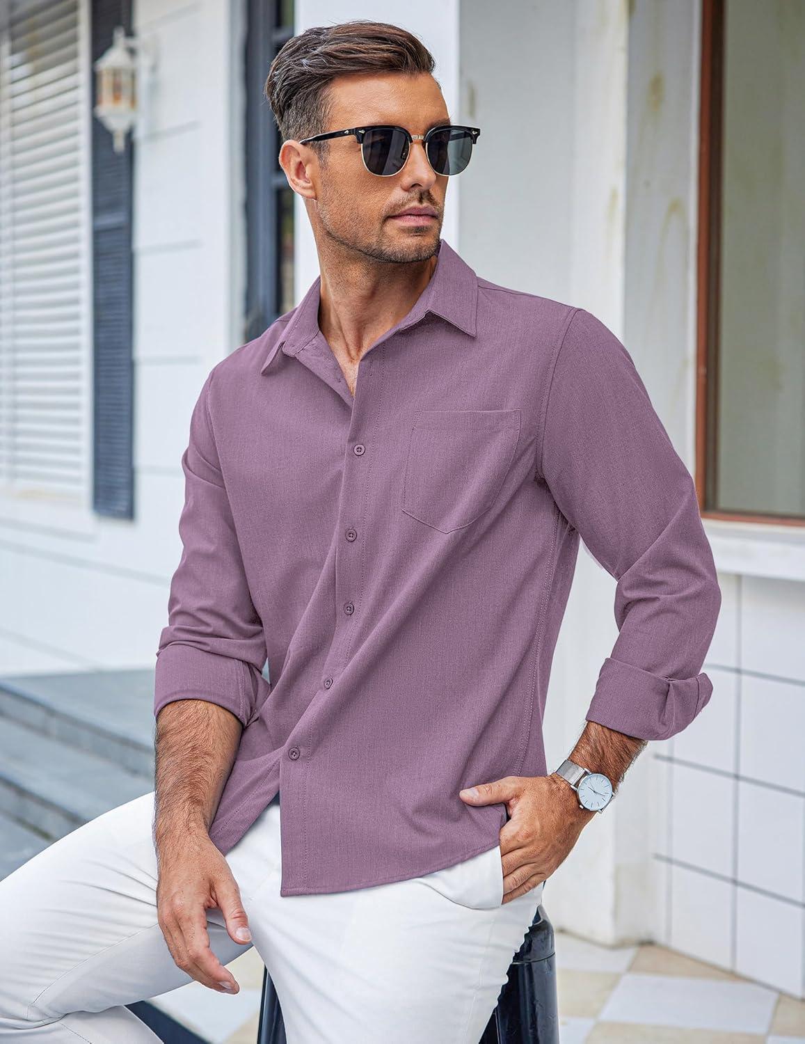 COOFANDY Men’s Casual Button Down Shirts Long Sleeve Untucked Shirts Regular Fit Linen Shirt(Purple)