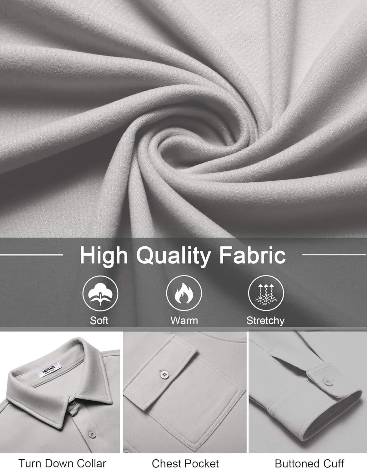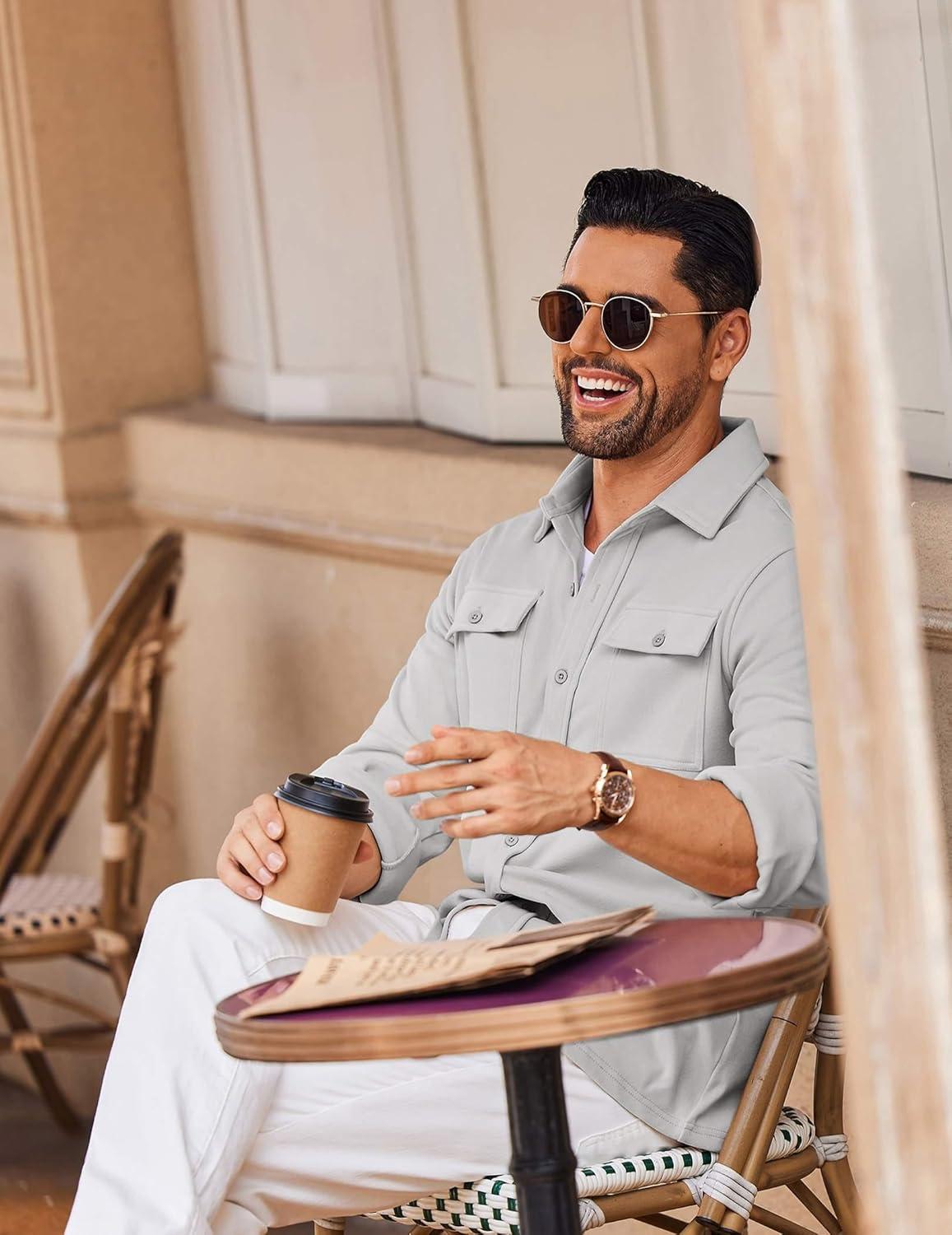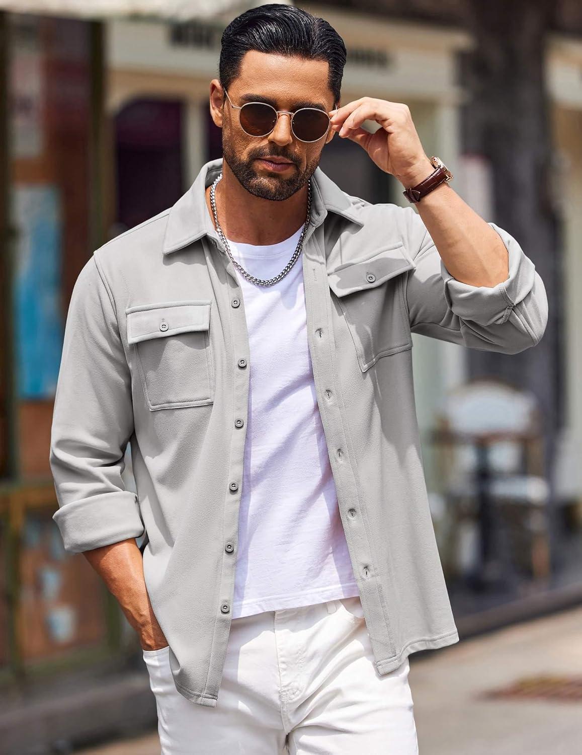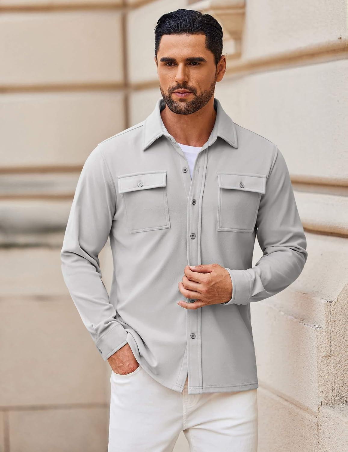 COOFANDY Mens Casual Button Down Shirts Long Sleeve Wrinkle-Free Shirt Lightweight Shirt Jacket(Light Grey)