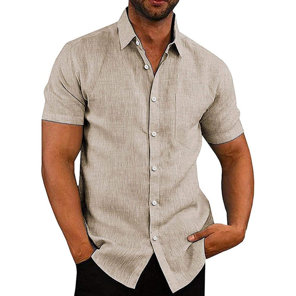 COOFANDY Men’s Casual Button Down Shirts Short Sleeve Linen Shirts Summer Beach Dress Shirt(Light Khaki)