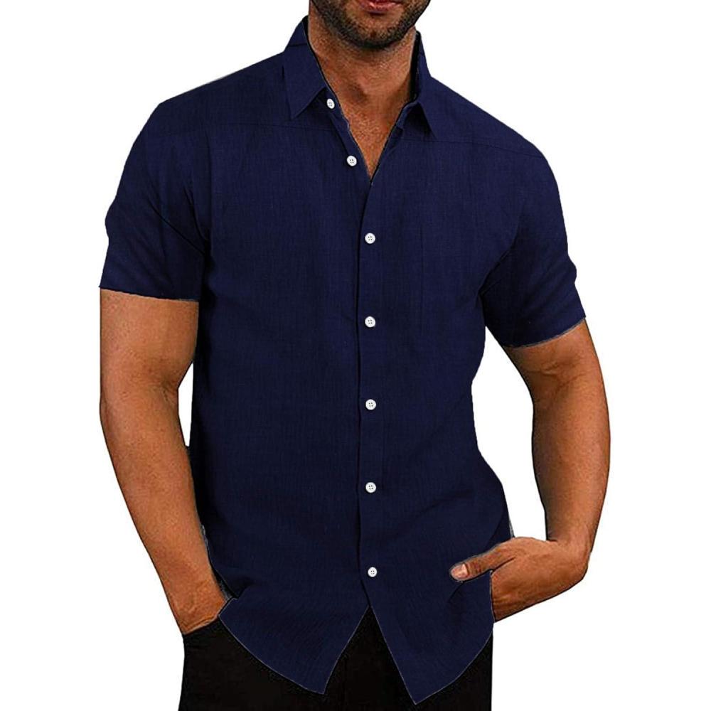 COOFANDY Men’s Casual Button Down Shirts Short Sleeve Linen Shirts Summer Beach Dress Shirt(Linen – Blue)