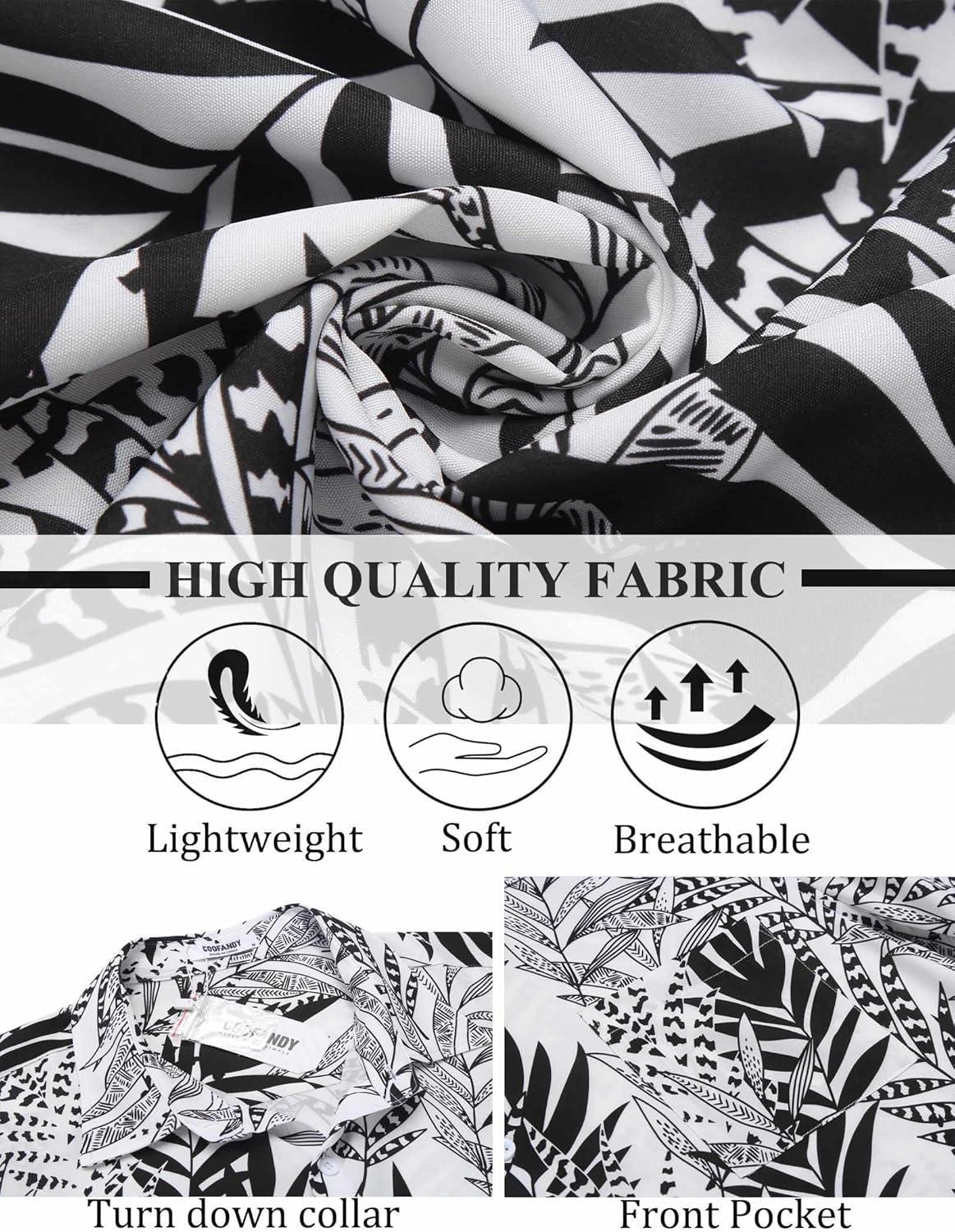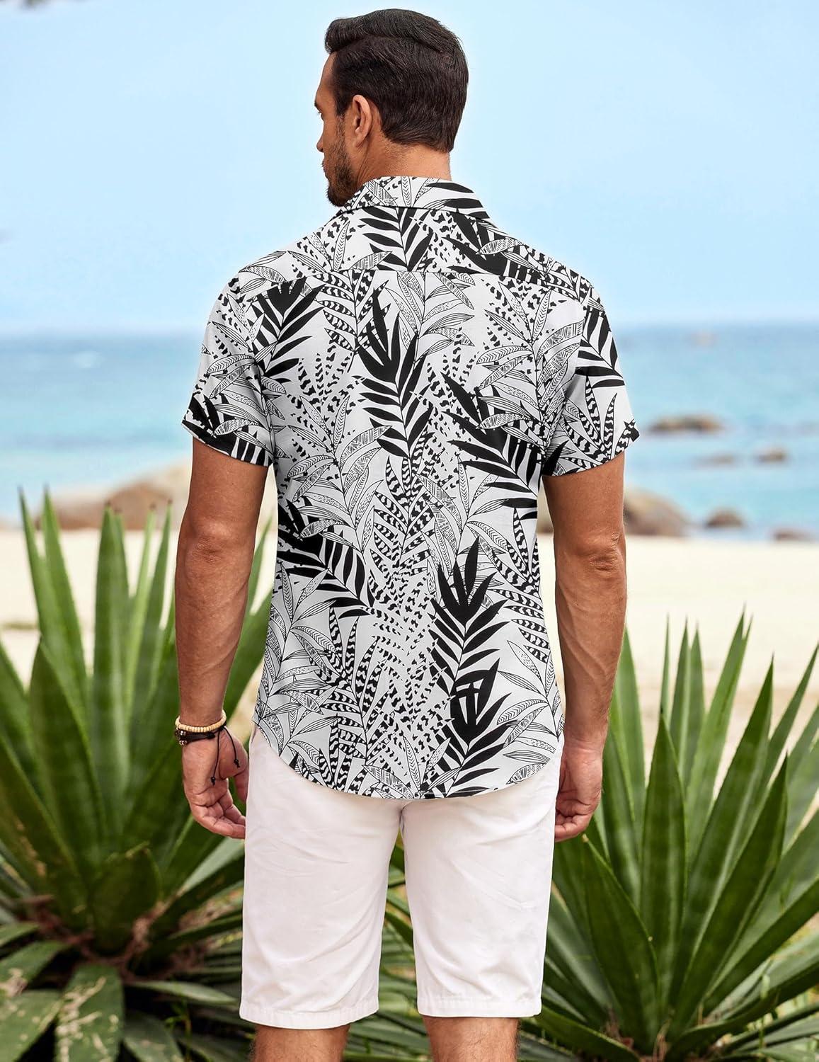 COOFANDY Men’s Casual Button Down Shirts Short Sleeve Summer Beach Shirt Fashion Textured Shirts with Pocket(Black&white Leaves)