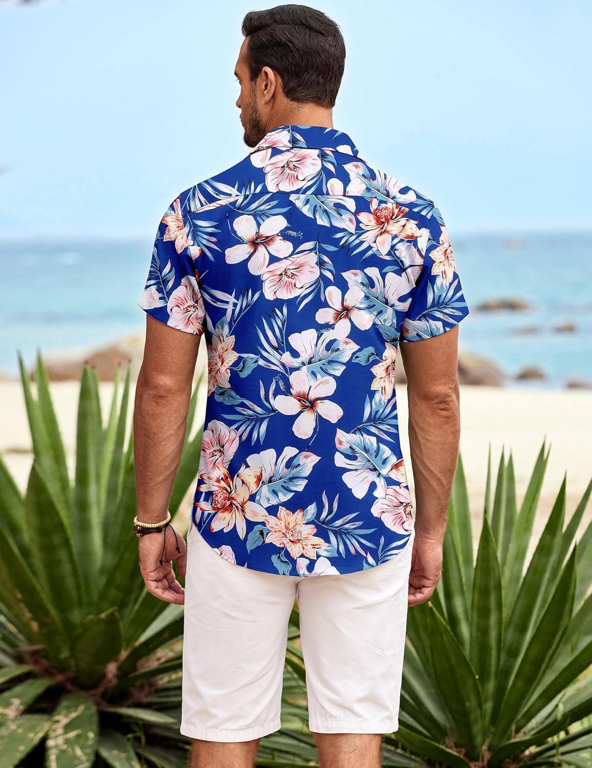 COOFANDY Men’s Casual Button Down Shirts Short Sleeve Summer Beach Shirt Fashion Textured Shirts with Pocket(Blue Floral)