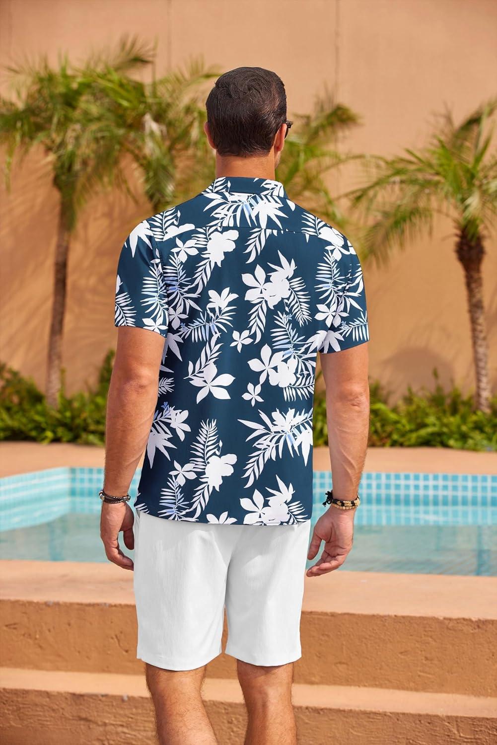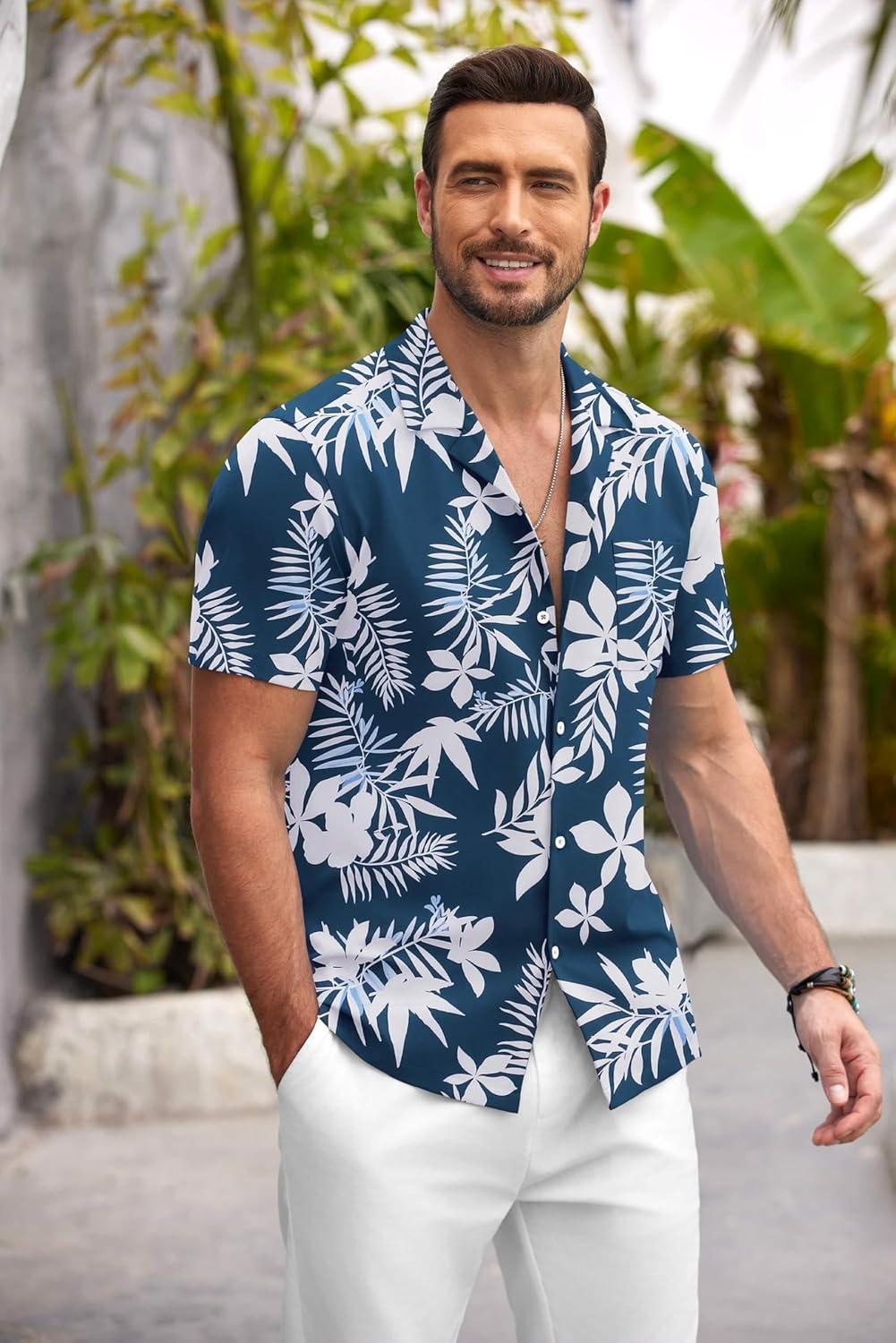 COOFANDY Men’s Casual Button Down Shirts Short Sleeve Summer Beach Shirt Fashion Textured Shirts with Pocket(Dark Blue-white Floral)