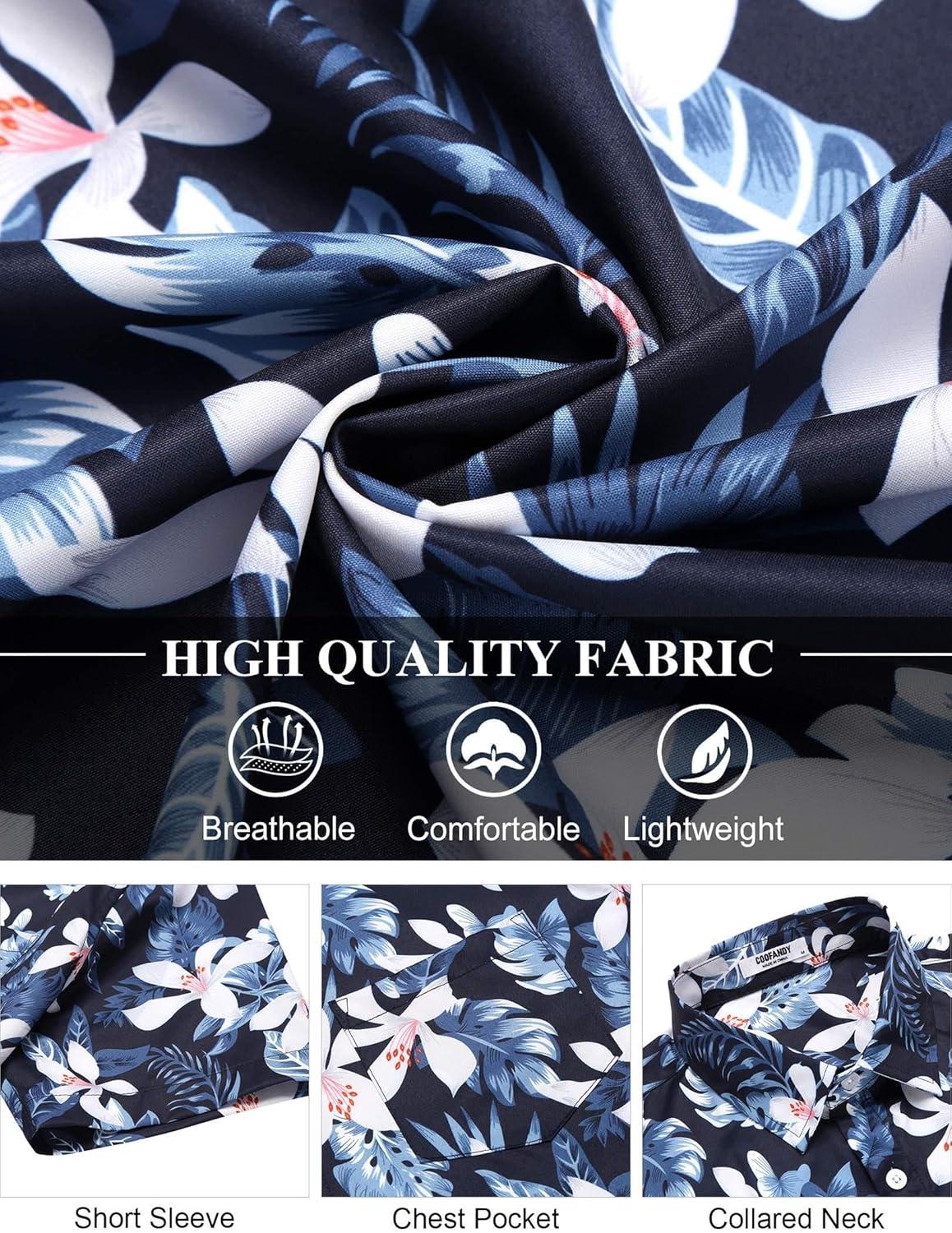 COOFANDY Men’s Casual Button Down Shirts Short Sleeve Summer Beach Shirt Fashion Textured Shirts with Pocket(Navy & White – Flower)