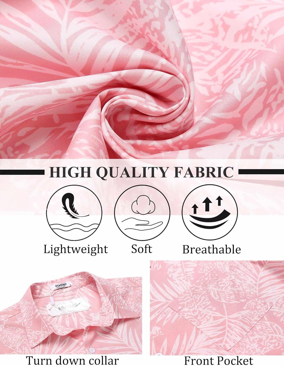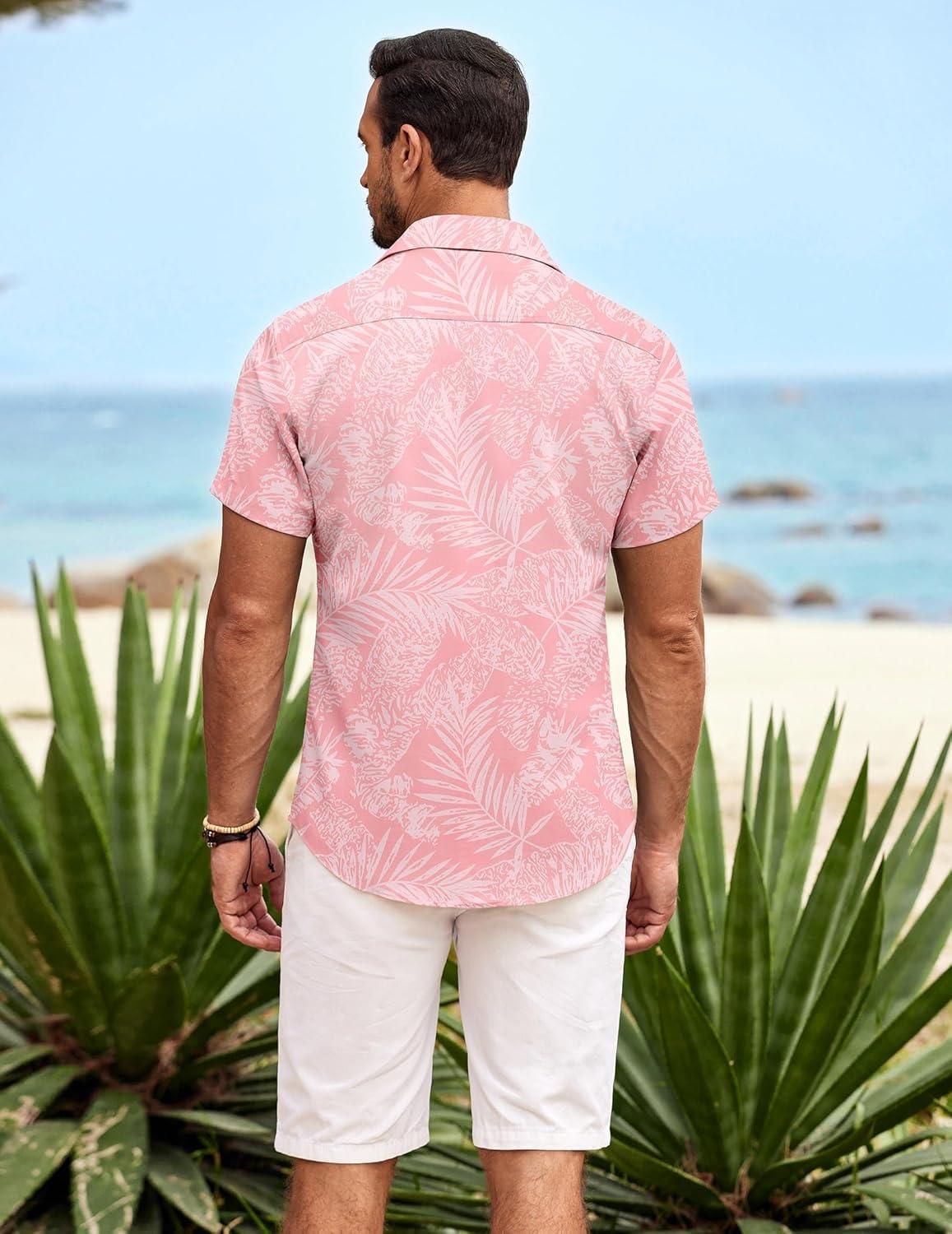 COOFANDY Men’s Casual Button Down Shirts Short Sleeve Summer Beach Shirt Fashion Textured Shirts with Pocket(Pink Leaves)